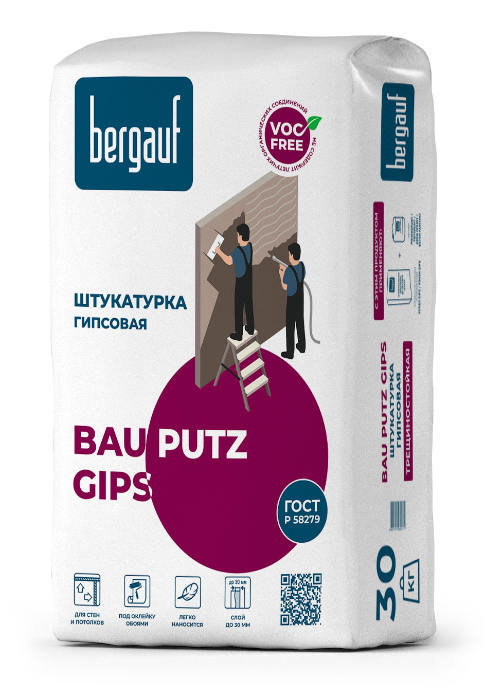 BERGAUF Bau Putz Gips штукатурка гипсовая для потолков и стен (30кг)