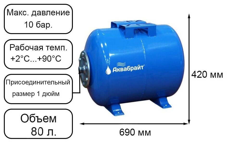 Гидроаккумулятор "аквабрайт" ГМ-80 Г (80л, горизонтальный, подключение 1") интересное: