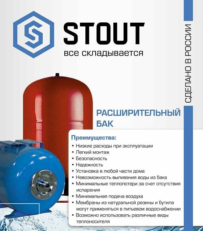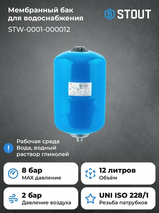 СохранитьРасширительный бак, гидроаккумулятор 12 л. вертикальный (цвет синий), STOUT STW-0001-000012 интересное: