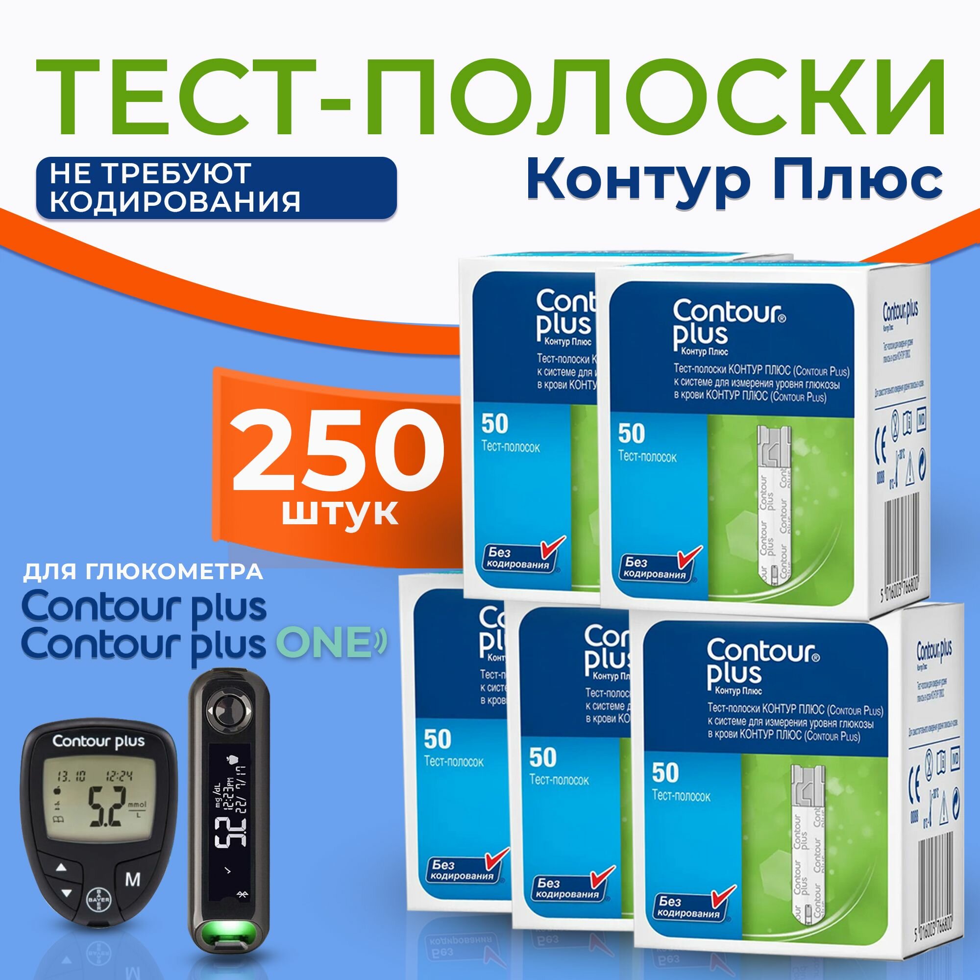 Тест-полоски для глюкометра Contour Plus (Контур Плюс), 250 штук (5 упаковок №50)