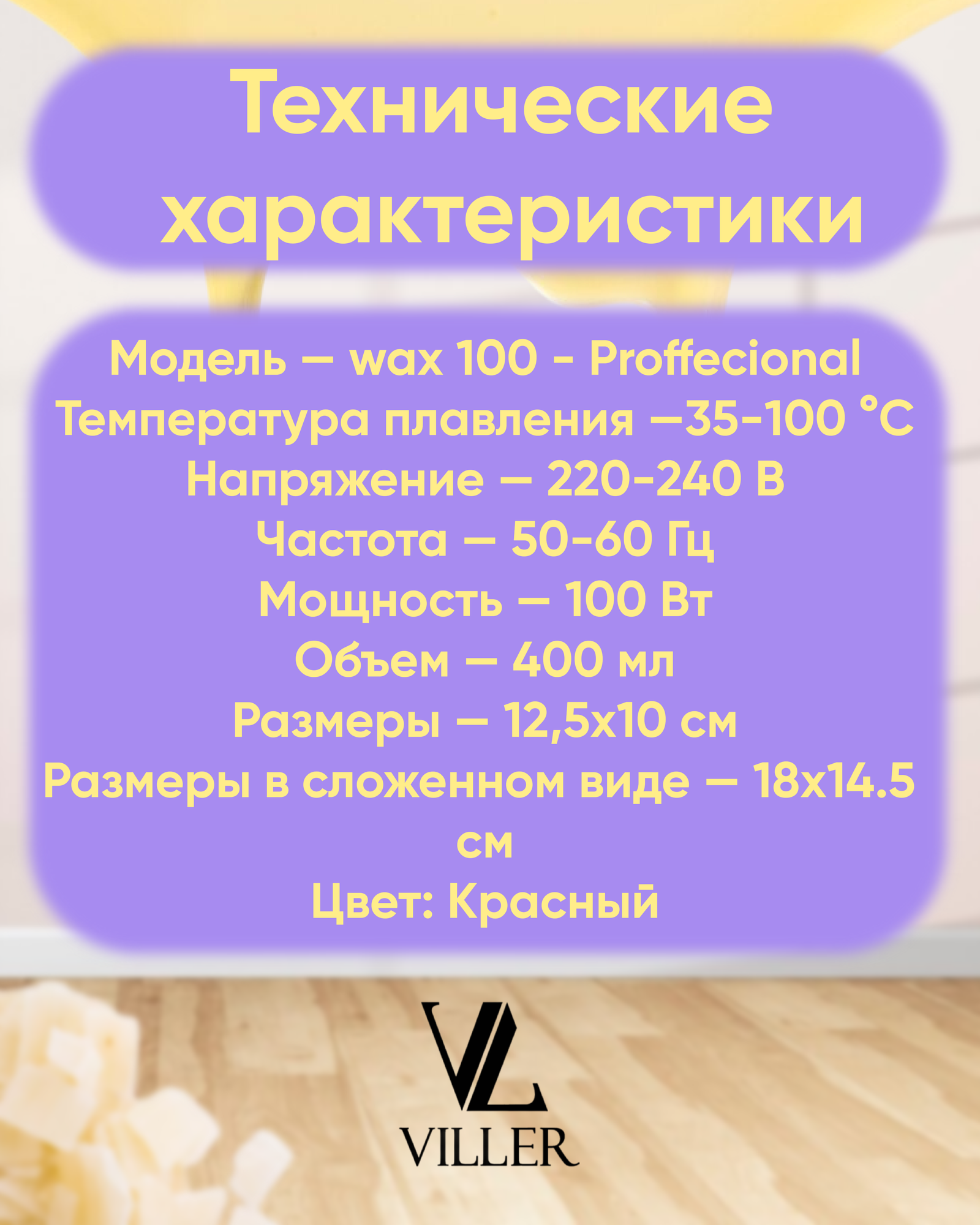 | Время нагрева воска | 15 минут |