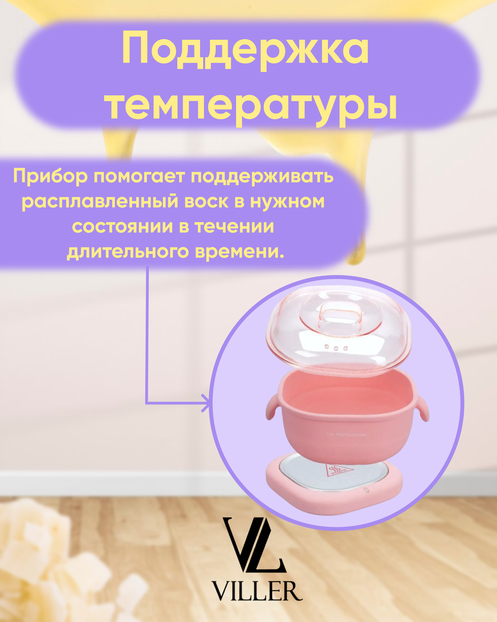 Воскоплав Luazon LVPL-07, баночный, 100 Вт, 400 г, регулировка температуры, 220 В, сиреневый