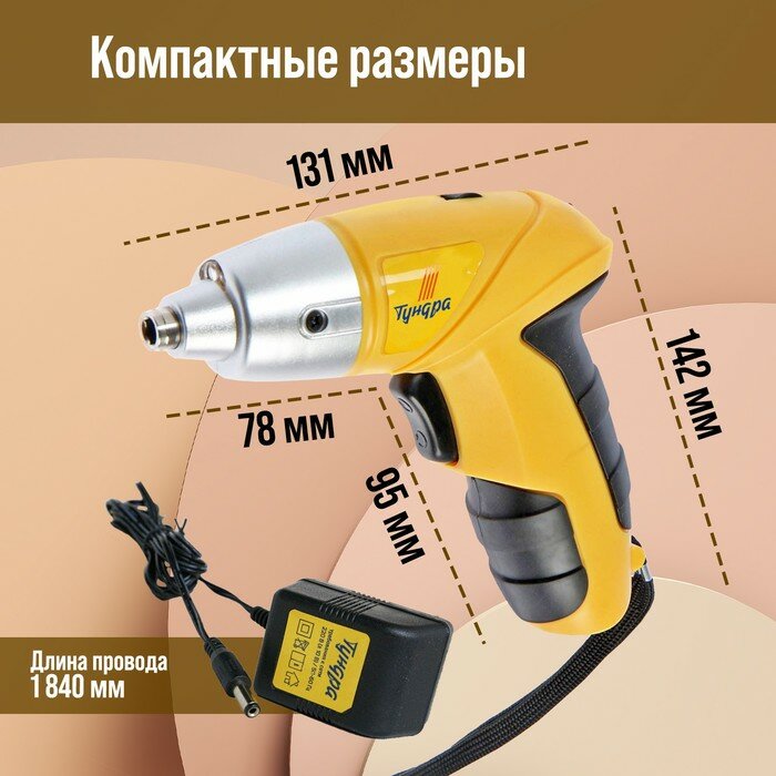 Отвертка Тундра , Ni-Cd 600 mAh 3.6V, 180 об/мин, 2.5 Н*м 5437466 интересное: