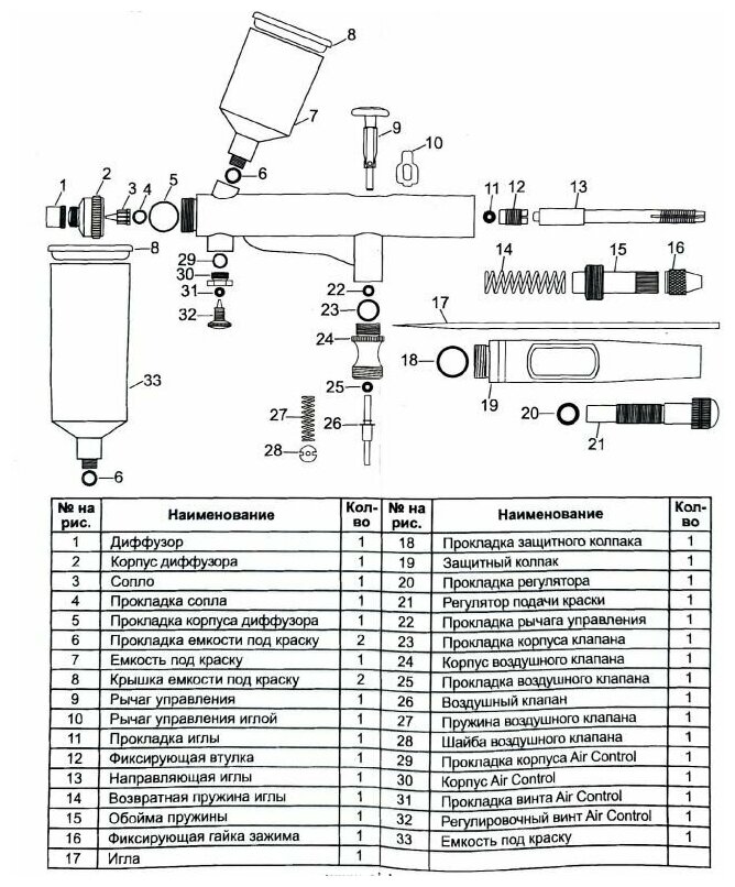 | Тип смешивания воздушного и красочного потоков | внутренний |