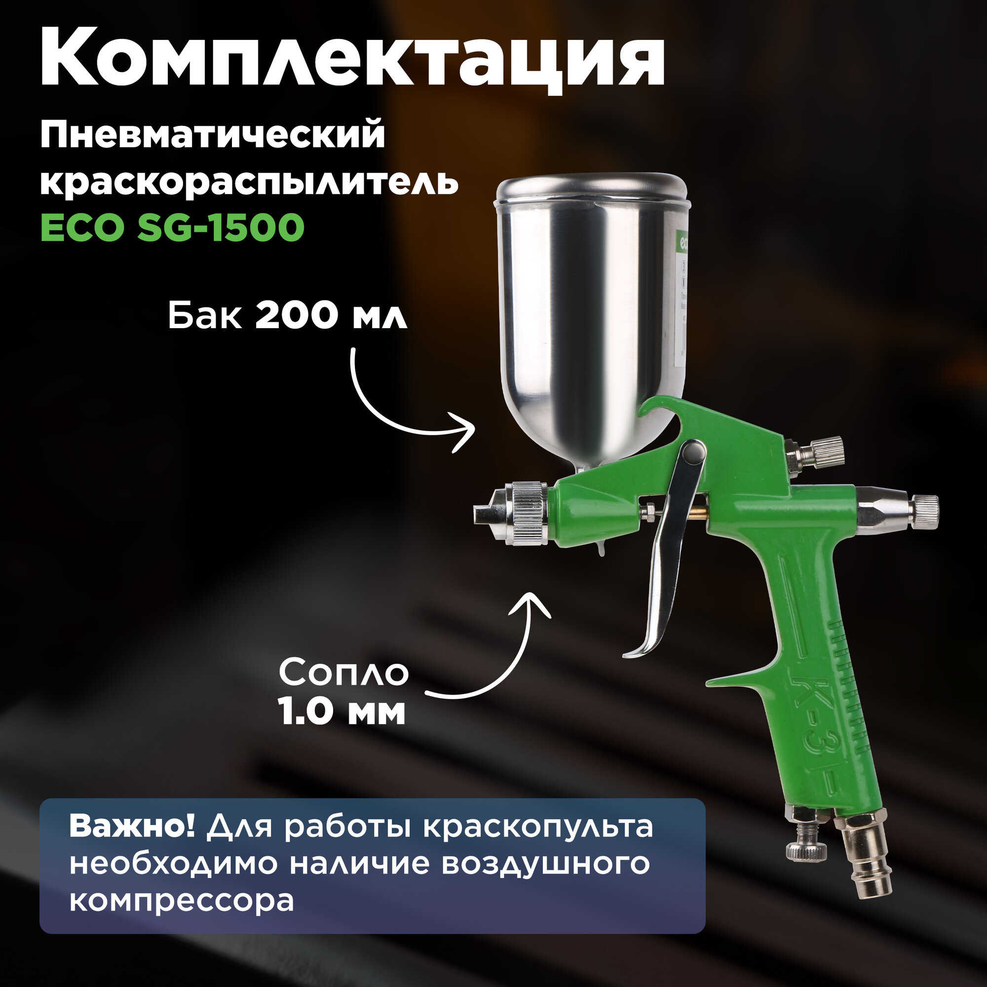 ECO Краскопульт пневматический SG-1500 EC1530-10 интересное: