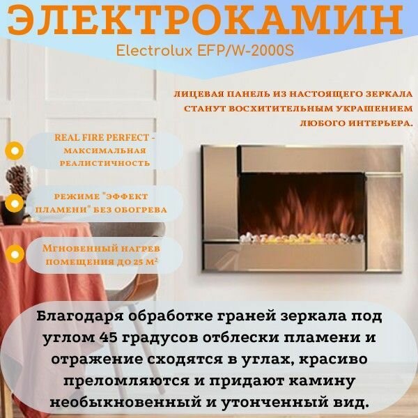 Настенный электрокамин Electrolux EFP/W-2000S зеркальный