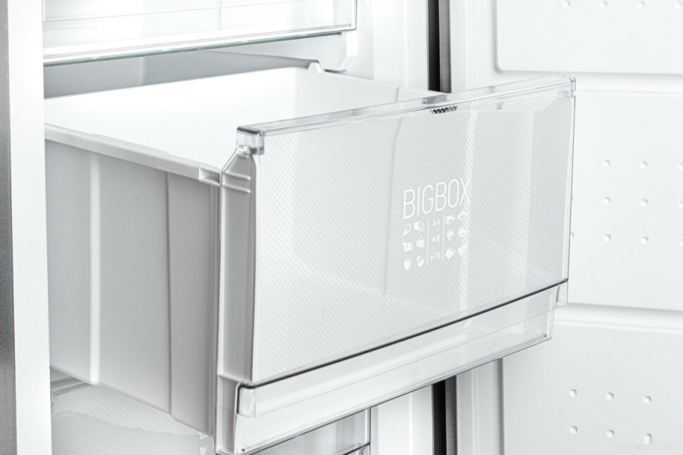 | Плюсы: | Большая и вместительная. Быстро замораживает. Не образуется наледи |