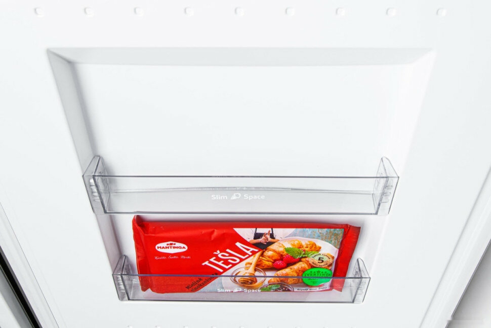 Работает не сильно шумно (кому-то конечно может не понравиться 43 дБ). Вместительный, красивый. Есть даже две маленькие полки в двери и удобная узкая полка (возможно, для пельменей). |