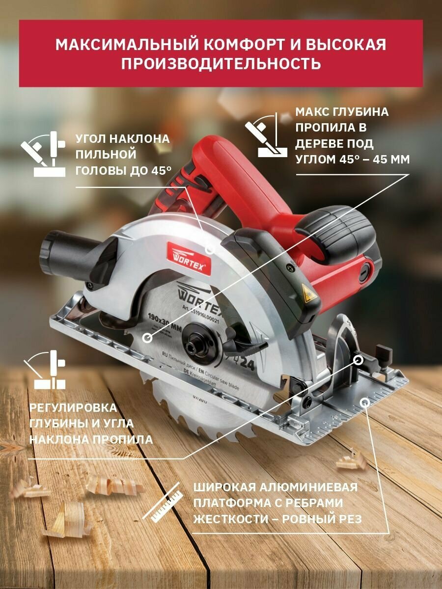 Дисковая пила Wortex Пила циркулярная WORTEX CS 1916 L (CS1916L00021), 1600 Вт