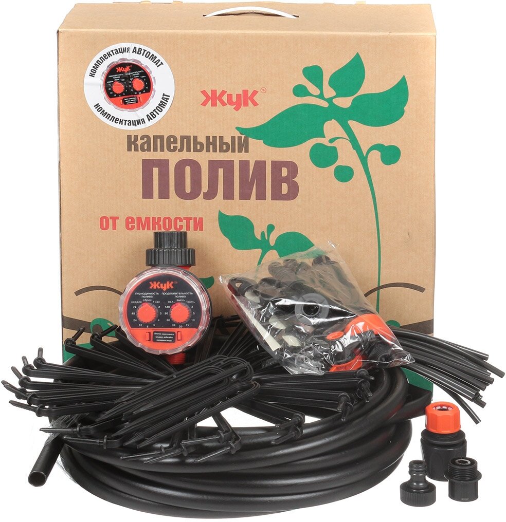 Комплект для капельного полива Жук, от емкости, с таймером, 30 растений