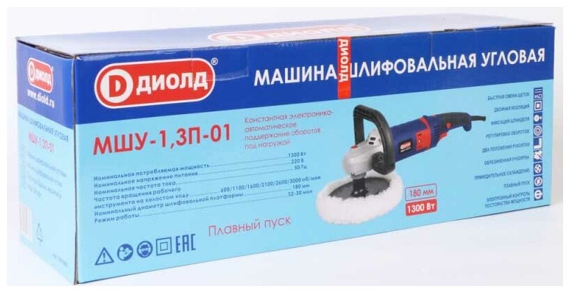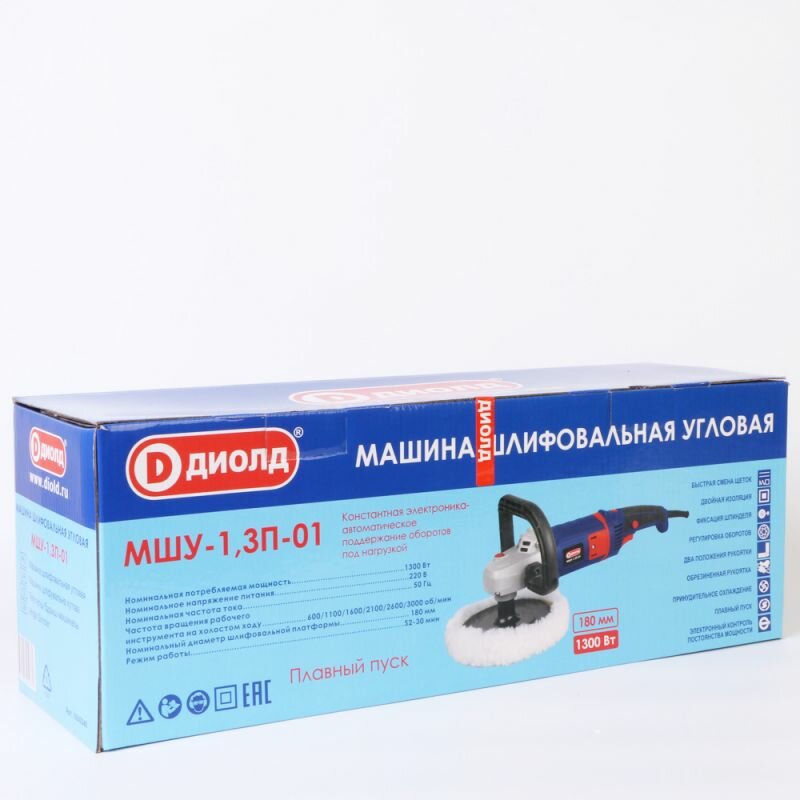 Полировальная машина диолд МШУ-1,3П-01, 1300 Вт, коробка, система стабилизации оборотов
