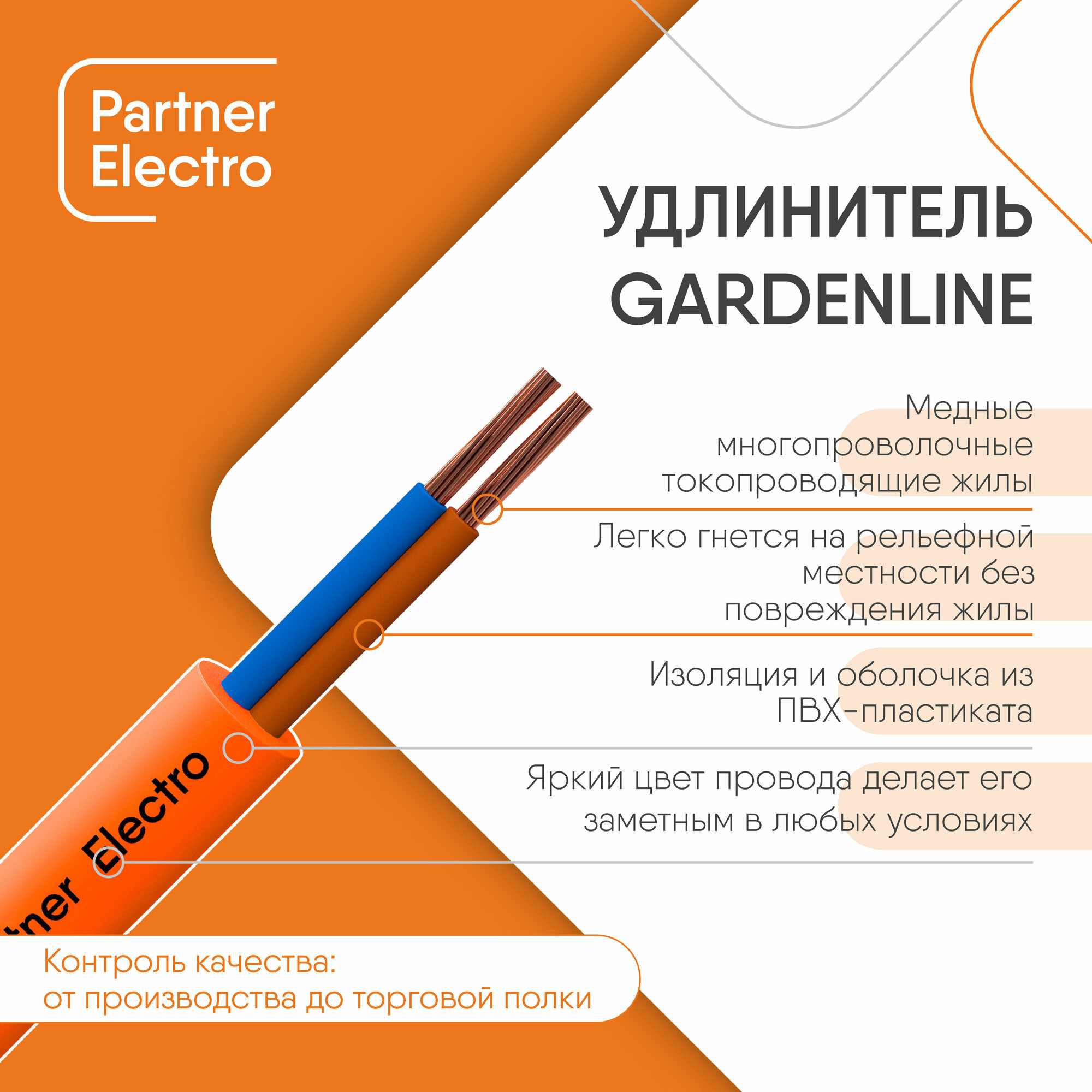 Удлинитель шнур Партнер-Электро GardenLine на рамке б/з ПВС 2х0,75 ГОСТ 6A 30м IP 44 US201B-130OR