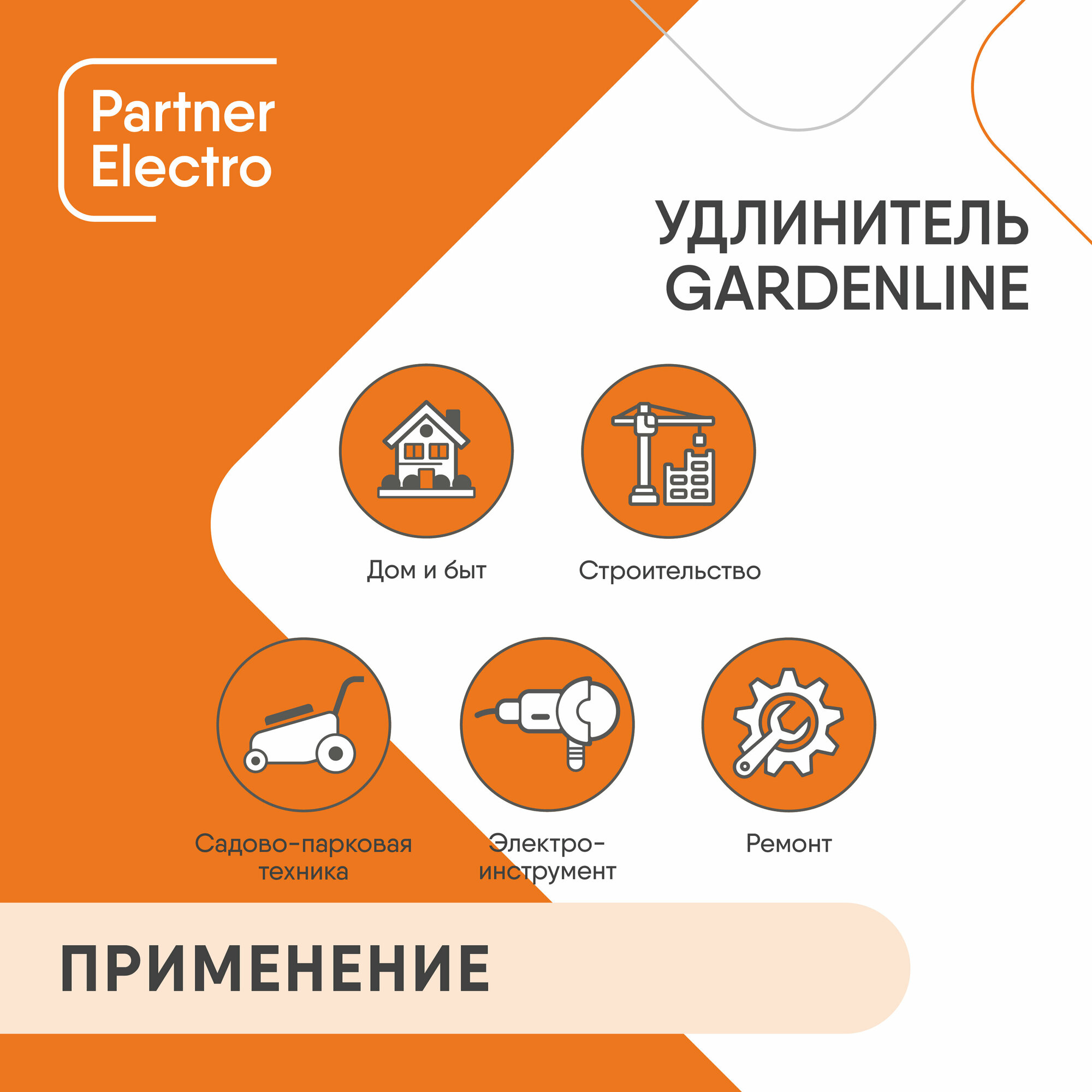 Удлинитель шнур Партнер-Электро GardenLine на рамке б/з ПВС 2х0,75 6A 30м IP 44 оранж.шн