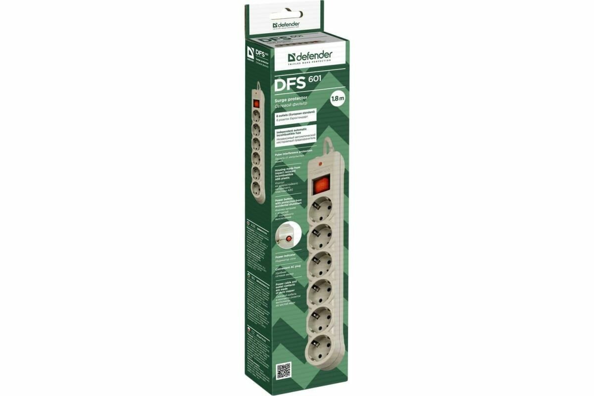 Сетевой фильтр Defender dfs-601 (1.8м) ( 6 розеток )