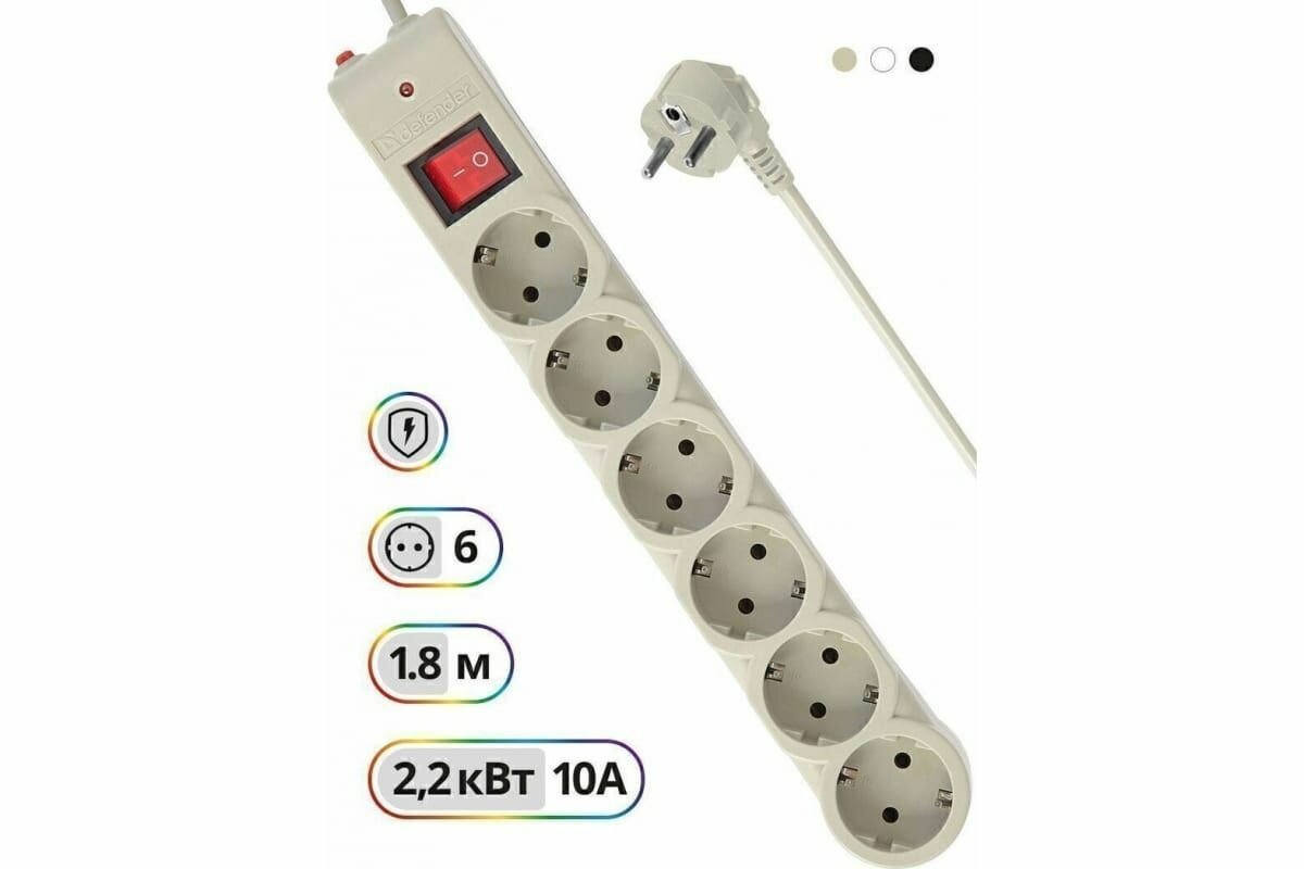 Сетевой фильтр Defender DFS 601 - 6 розеток - 1,8 м