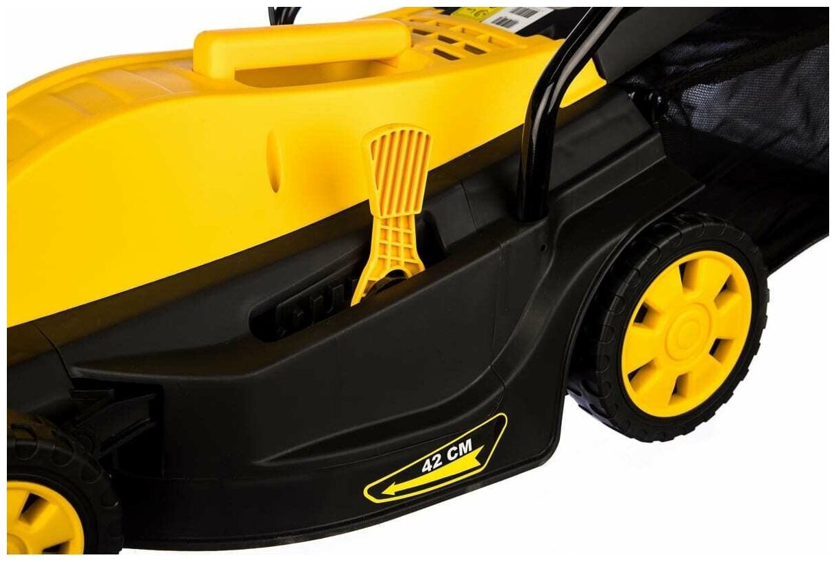 | Комплектация | , Преимущества Huter ELM-1800T: высокопроизводительный и мощный электрический двигатель; корпус сделан из прочного пластика, устойчивого к повреждениям; емкость для сбора травы обеспечивает длительное время работы; нож сделан из долговечных материалов, что позволяет продлить срок службы оборудования; возможность настройки высоты среза. |