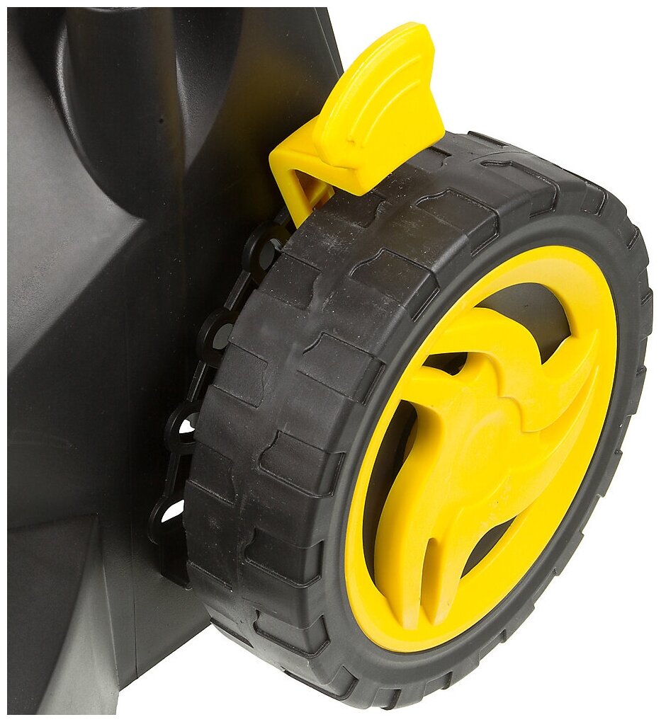 | Минусы: | слабая конструкция колёс, уже через месяц колесо сломалось и стоит оно не дёшево. благо менять просто. Ещё при работе с ним трава легко залетает во внутрь корпуса, что засоряет Ротер движка |