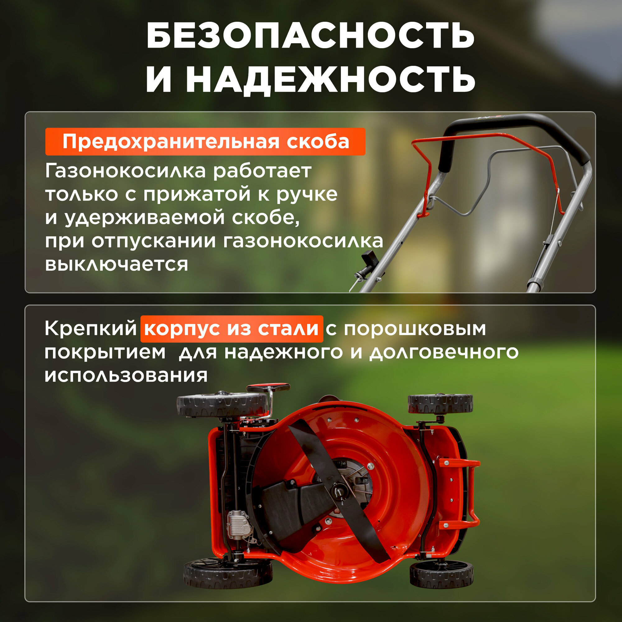 | Дополнительные функции | возможность установки мульчирующей насадки / регулировка высоты скашивания |