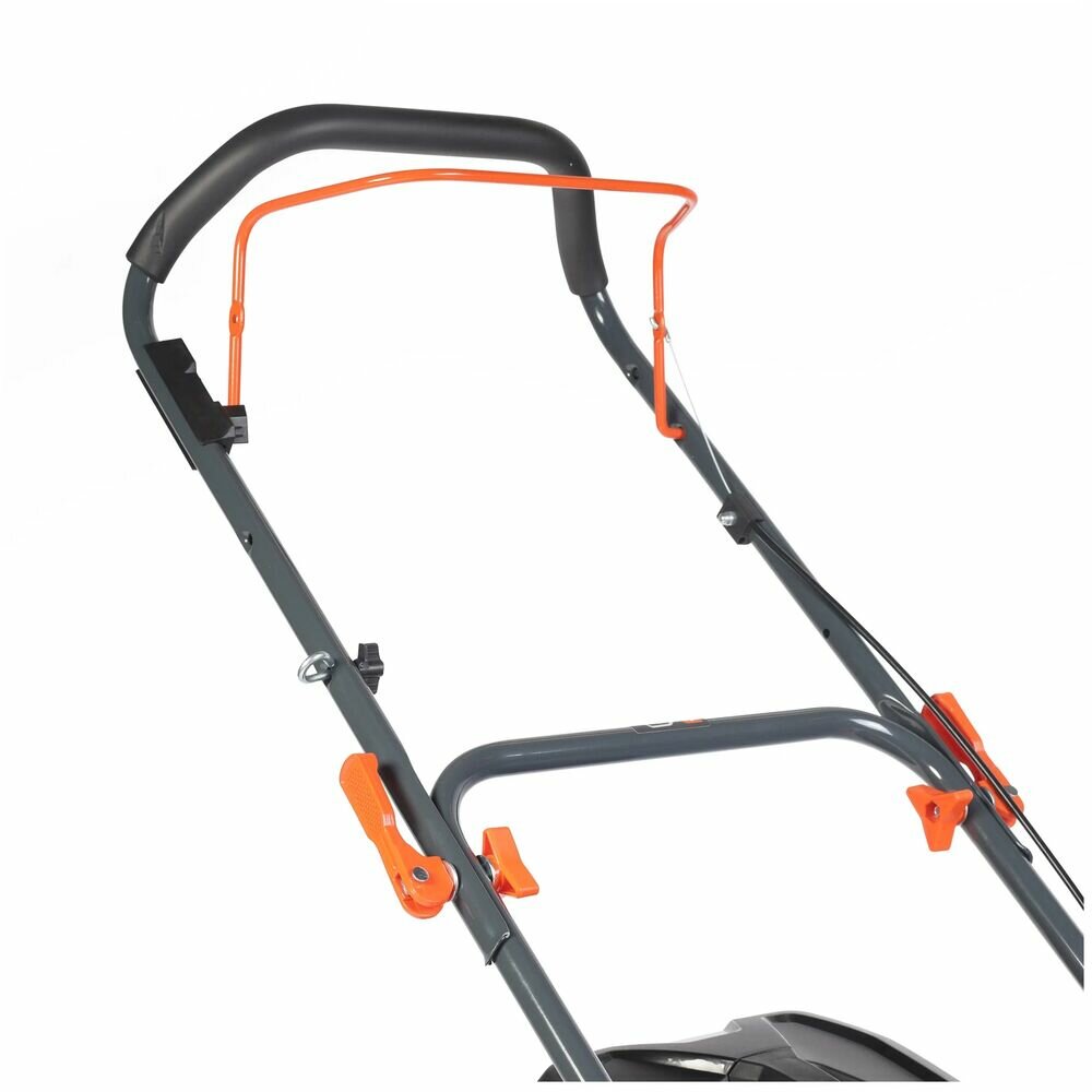 | Плюсы: | Ширина покоса, боковой выброс, большой травосборник с ручкой сверху, легкое перемещение, удобная регулировка высоты покоса. |