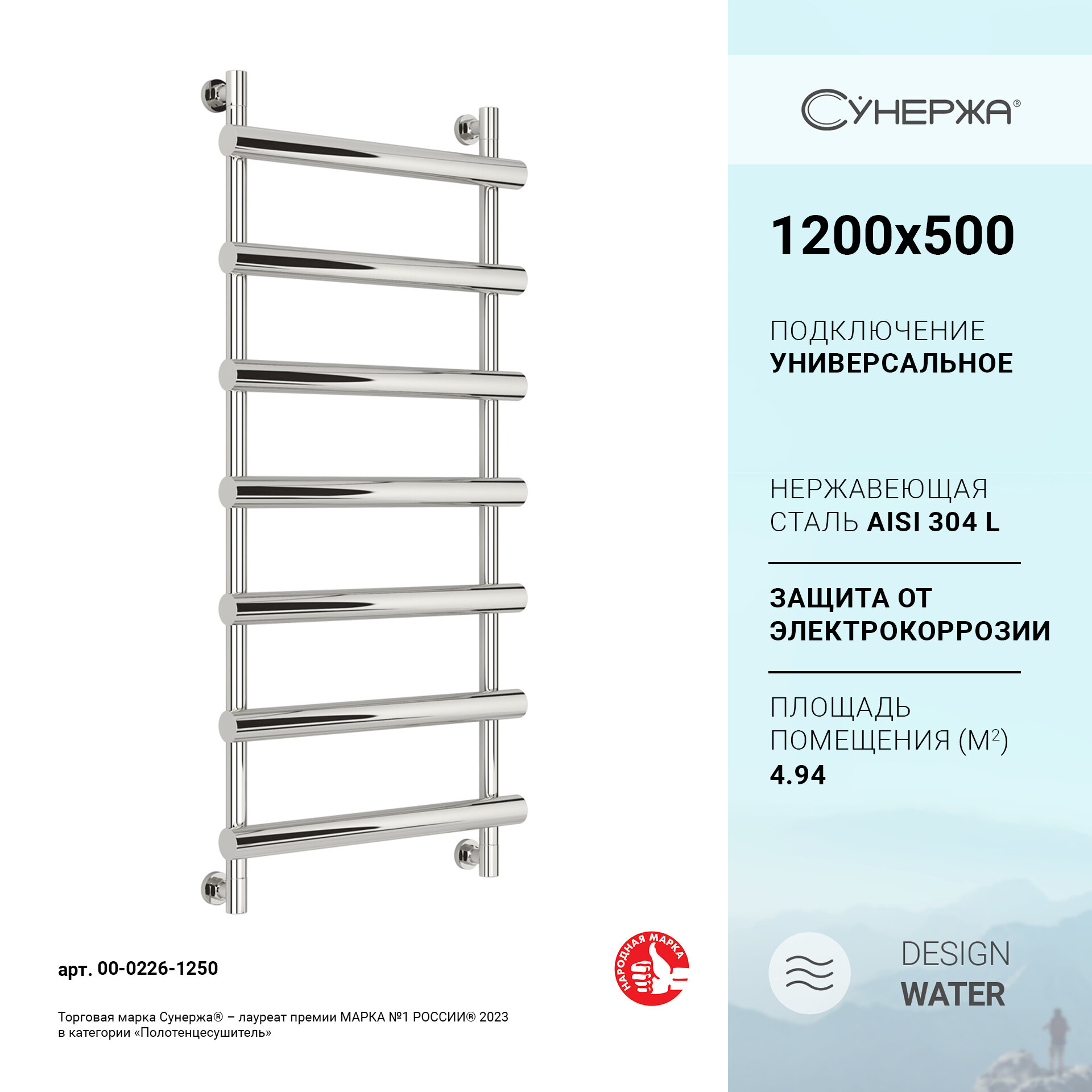 Водяной полотенцесушитель Сунержа Атлант 1200x500 арт. 00-0226-1250