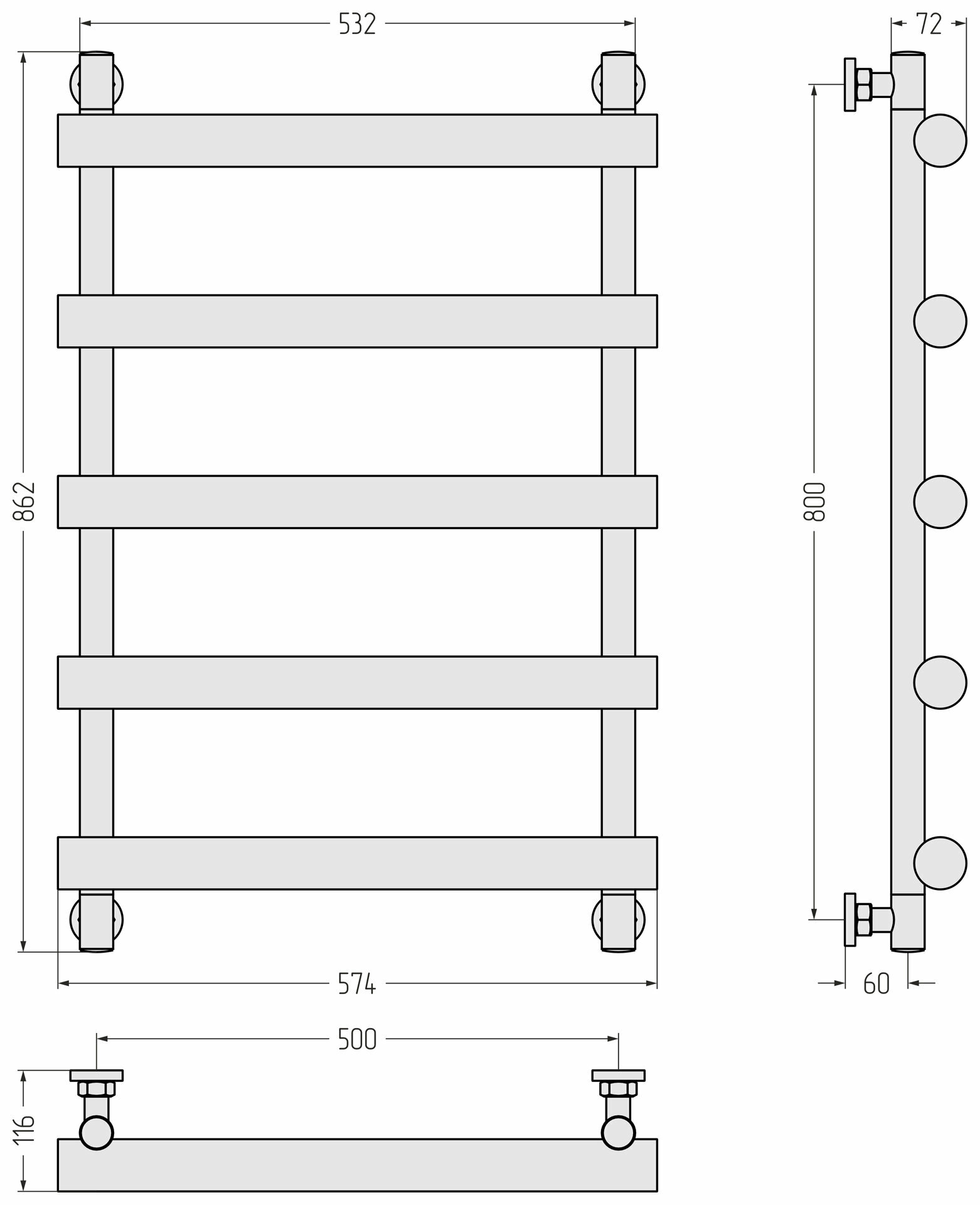 Водяной полотенцесушитель Aquanet Mauro(г2) 800x500
