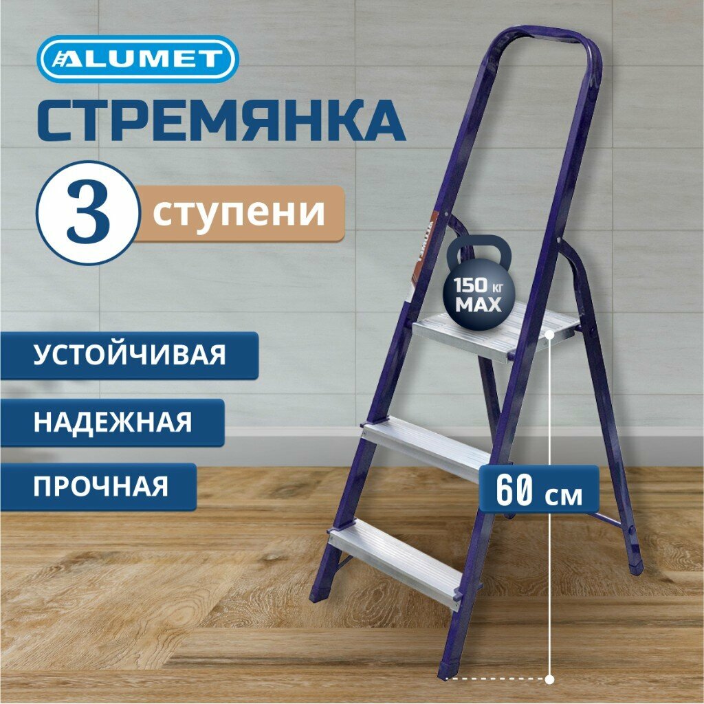 Стремянка 3 ступени, алюминий+металл, 0.6 м, 150 кг, Alumet, М8403