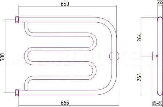 Полотенцесушитель водяной Сунержа, ВПС Лира 2П 500х650 Н. Г. 1“ (Без покрытия)