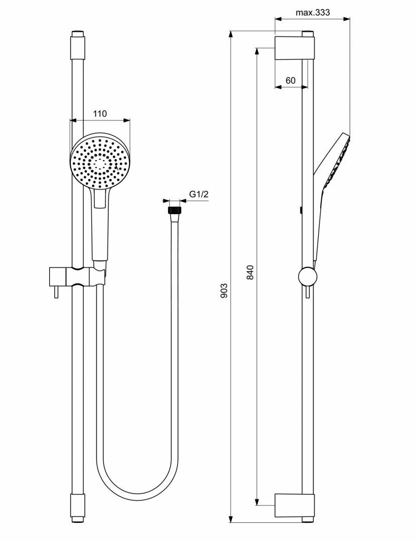 Душевой набор Ideal Standart IDEALRAIN со штангой EVO ROUND L3 (B2237AA)
