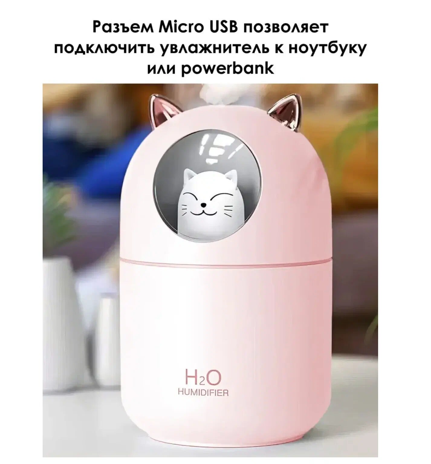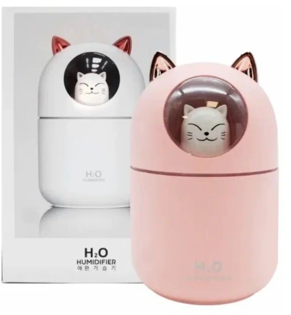 Увлажнитель воздуха мини Котик с подсветкой, ультразвуковой увлажнитель для дома, ночник светильник. Розовый интересное: