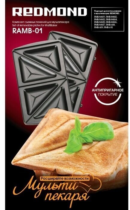 Redmond RAMB-01-SER панель "сэндвич" 2шт (форма для горячих бутербродов) для мультипекаря 6 серии интересное: