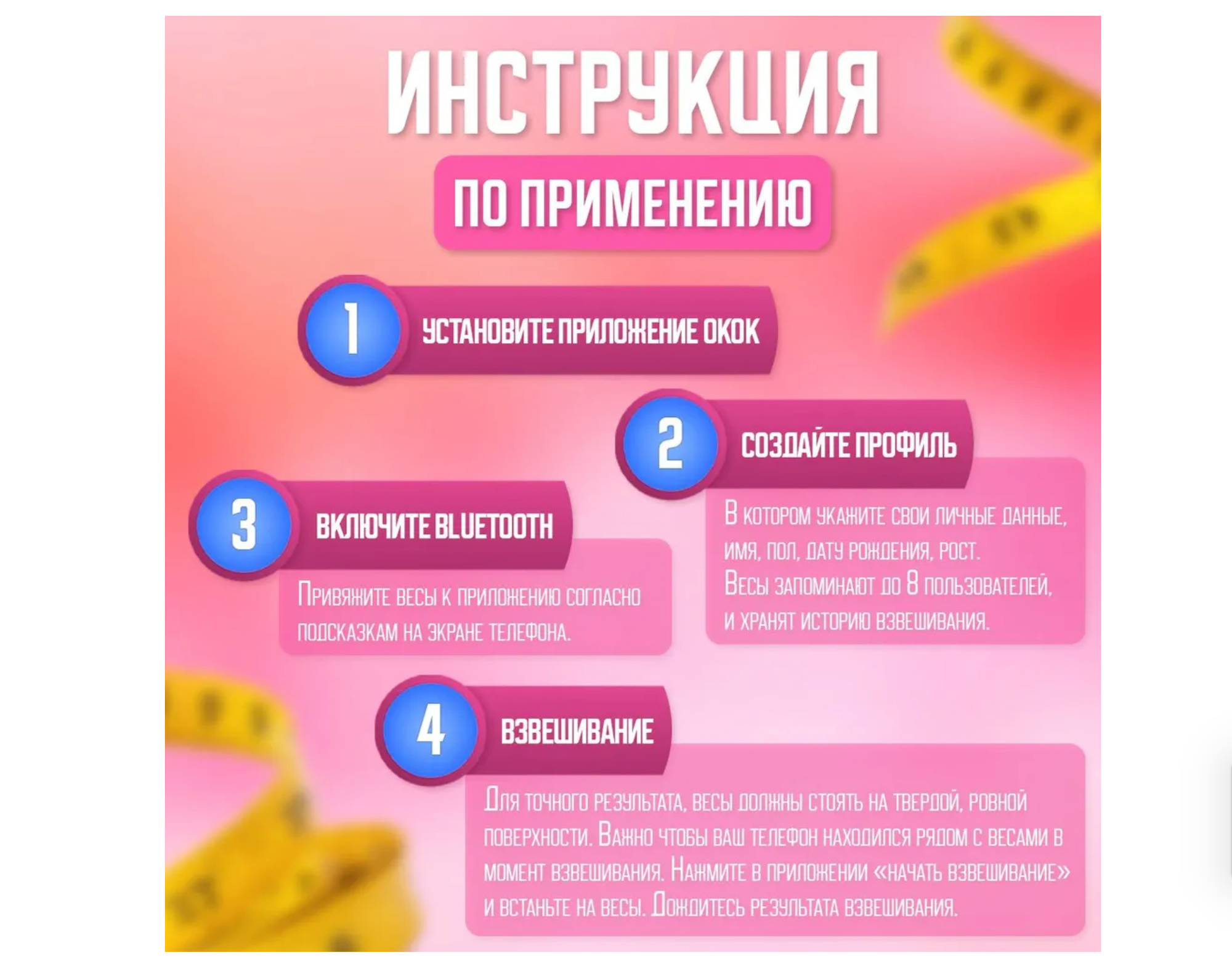 Пришли быстро, в комплекте сразу были батарейки, qr-код плохо читался, чтобы скачать приложение, но в поисковике быстро нашли и скачали, с телефоном сразу сконектились, весы очень точные, даже на кривом участке пола всё равно точно показывает вес, рекомендую к покупке