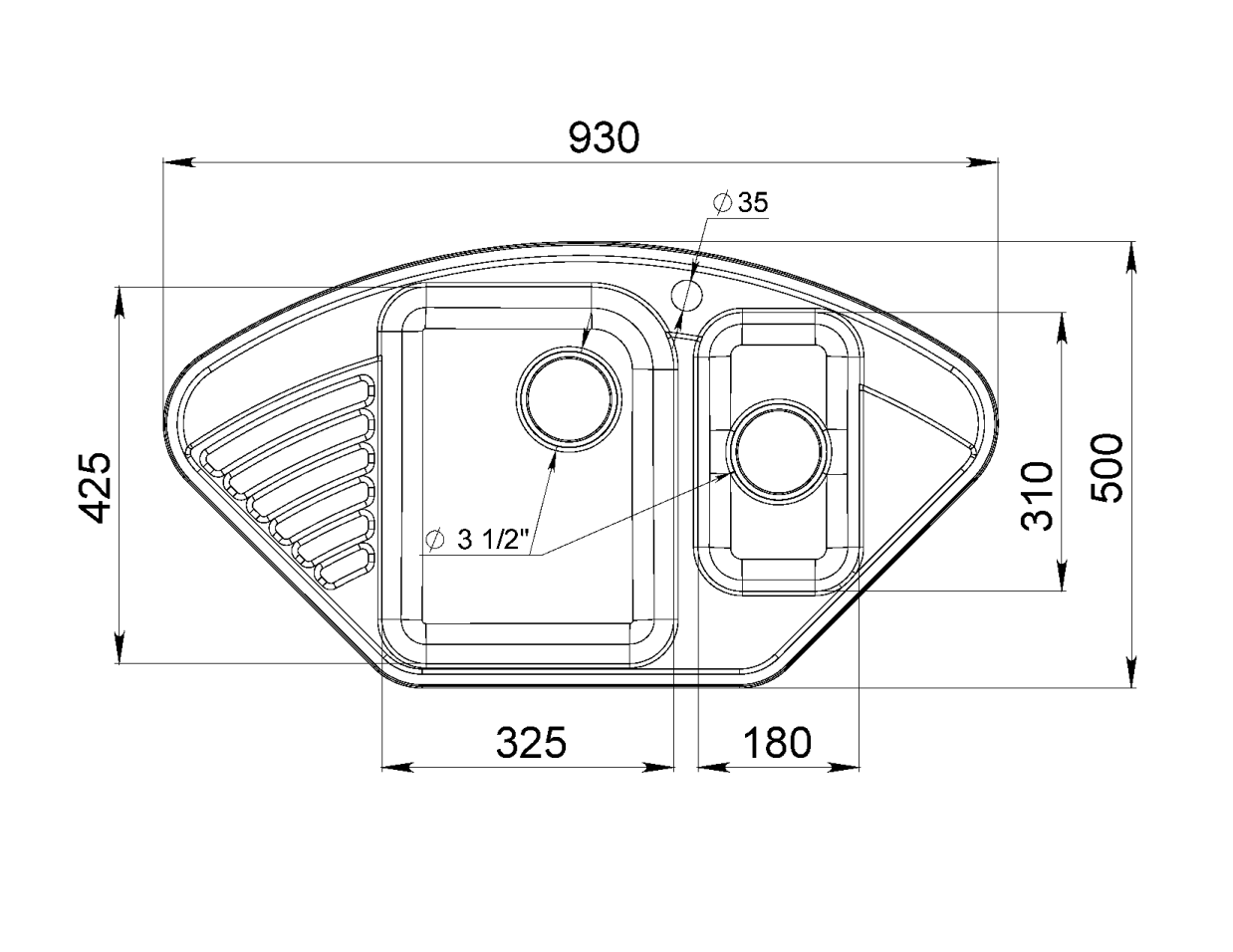 Мойка угл1,5 чаш. 930*500 (песок), GRANFEST, GF-Z14