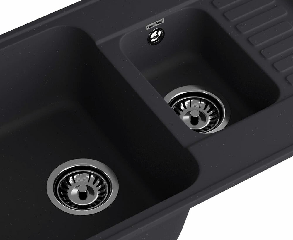 Кухонная кварцевая мойка GranFest QUARZ 21, 2-х чашевая, врезная, оборачиваемая, цвет черный/Раковина для кухни