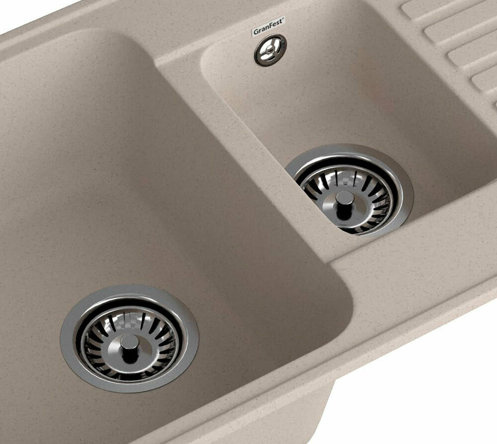Кухонная кварцевая мойка GranFest QUARZ 21, 2-х чашевая, врезная, оборачиваемая, цвет бежевый/Раковина для кухни