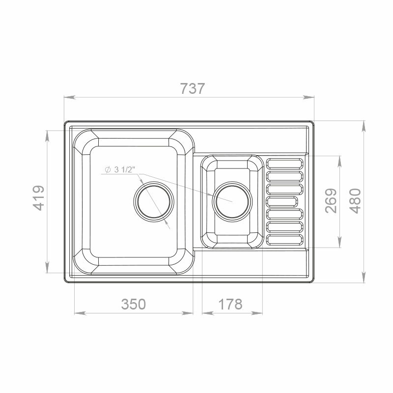 Врезная кухонная мойка 73.7 см, GranFest Quarz GF-Z21K, серый