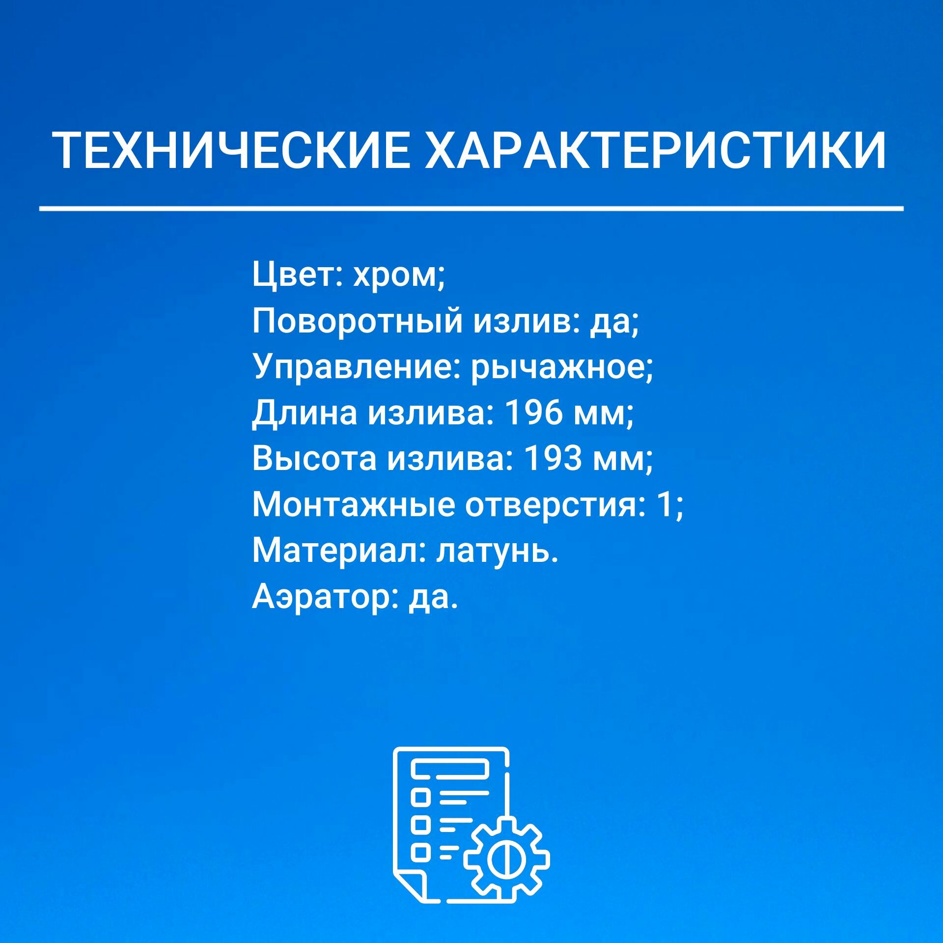 | Длина излива | 196 мм |
