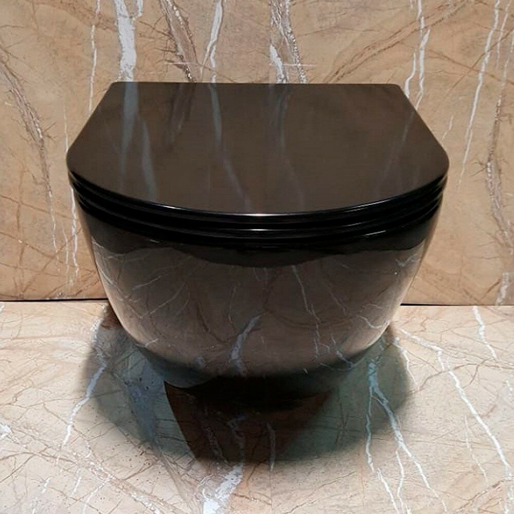 Подвесной безободковый унитаз Ceramalux RIMLESS CL 2196-18 черный глянцевый интересное: