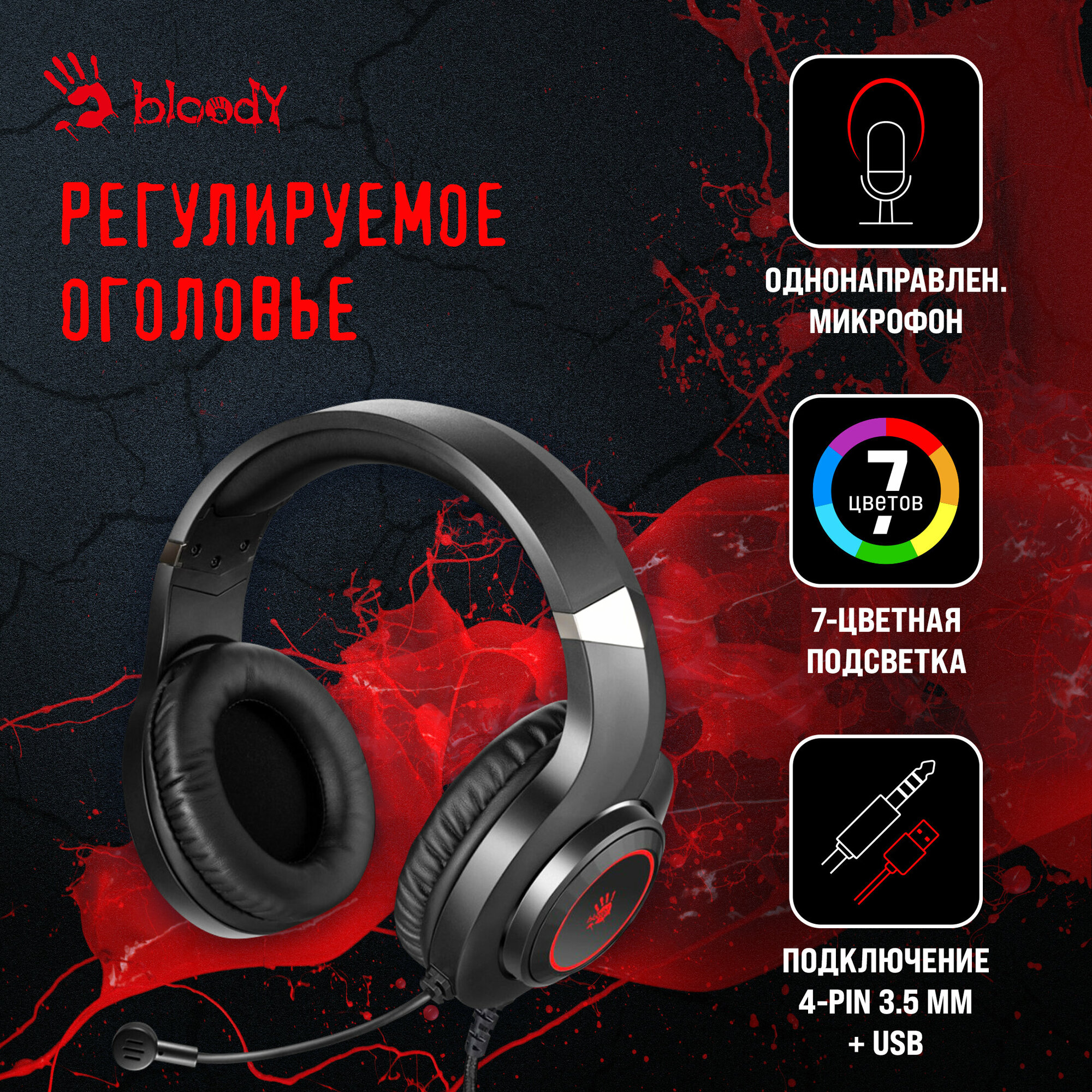 Гарнитура A4Tech "Bloody", черная, 2 м, мониторная (G220 AUX3.5-4PIN + USB)