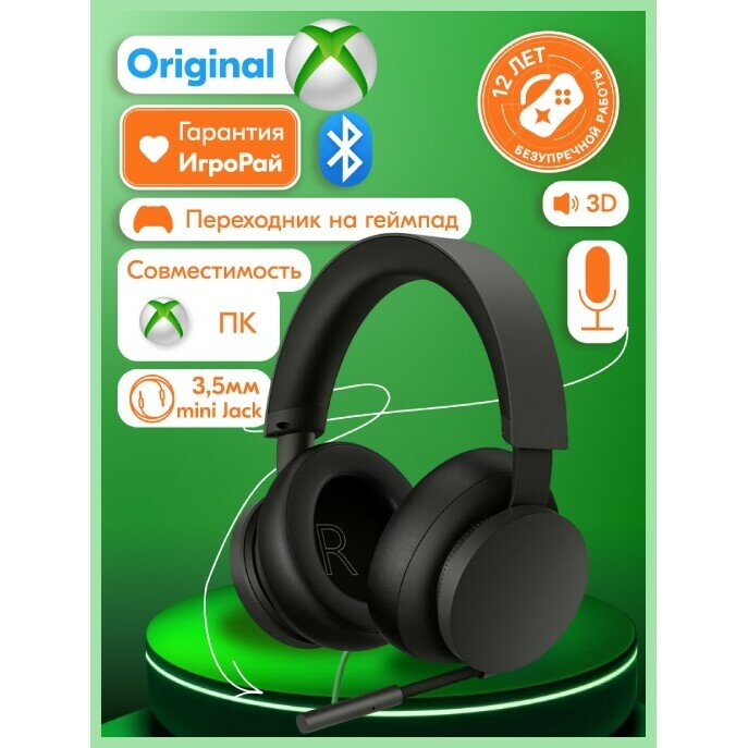 | Дополнительная информация | микрофон на гибкой штанге; амбушюры: овальной формы, покрытые пеной и полиуретановой кожей; поддерживает технологии пространственного звука Windows Sonic, Dolby Atmos и DTS Headphone:X на консолях Xbox Series X, S и Xbox One |