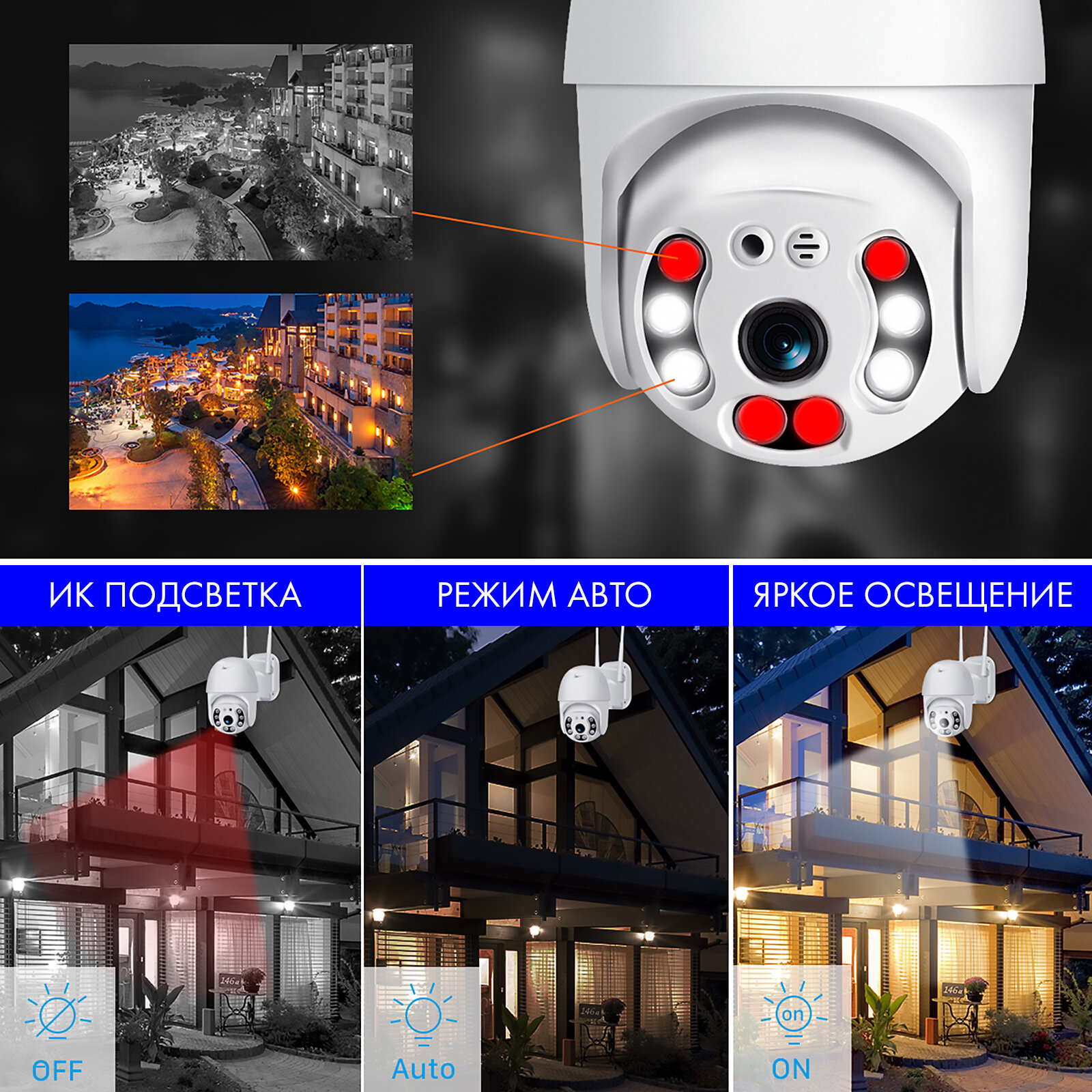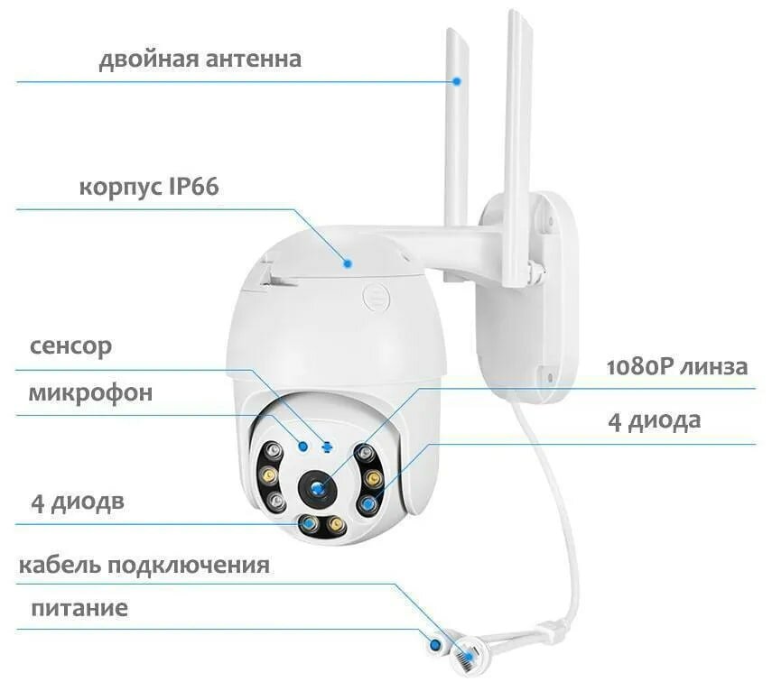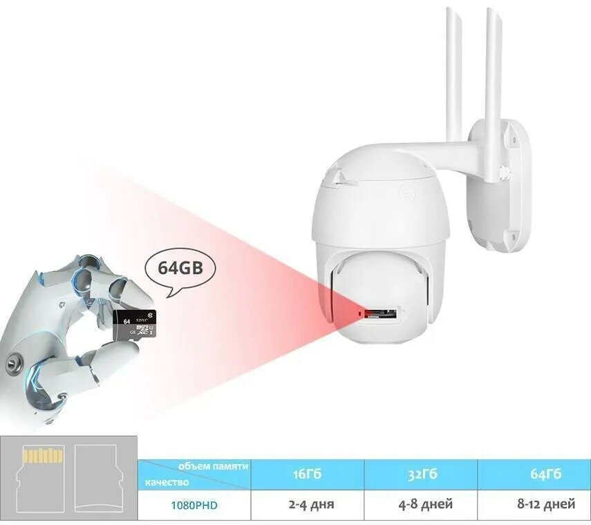 | Минусы: | Датчики движения не работают,камеры вертятся только с телефона,ночью при обнаружении объекта свет не включается,работает только ик.подсветка.Настройка в приложении лёгкая,так что думаю,что приложение здесь не при чём.Карты памяти в комплекте нет. |