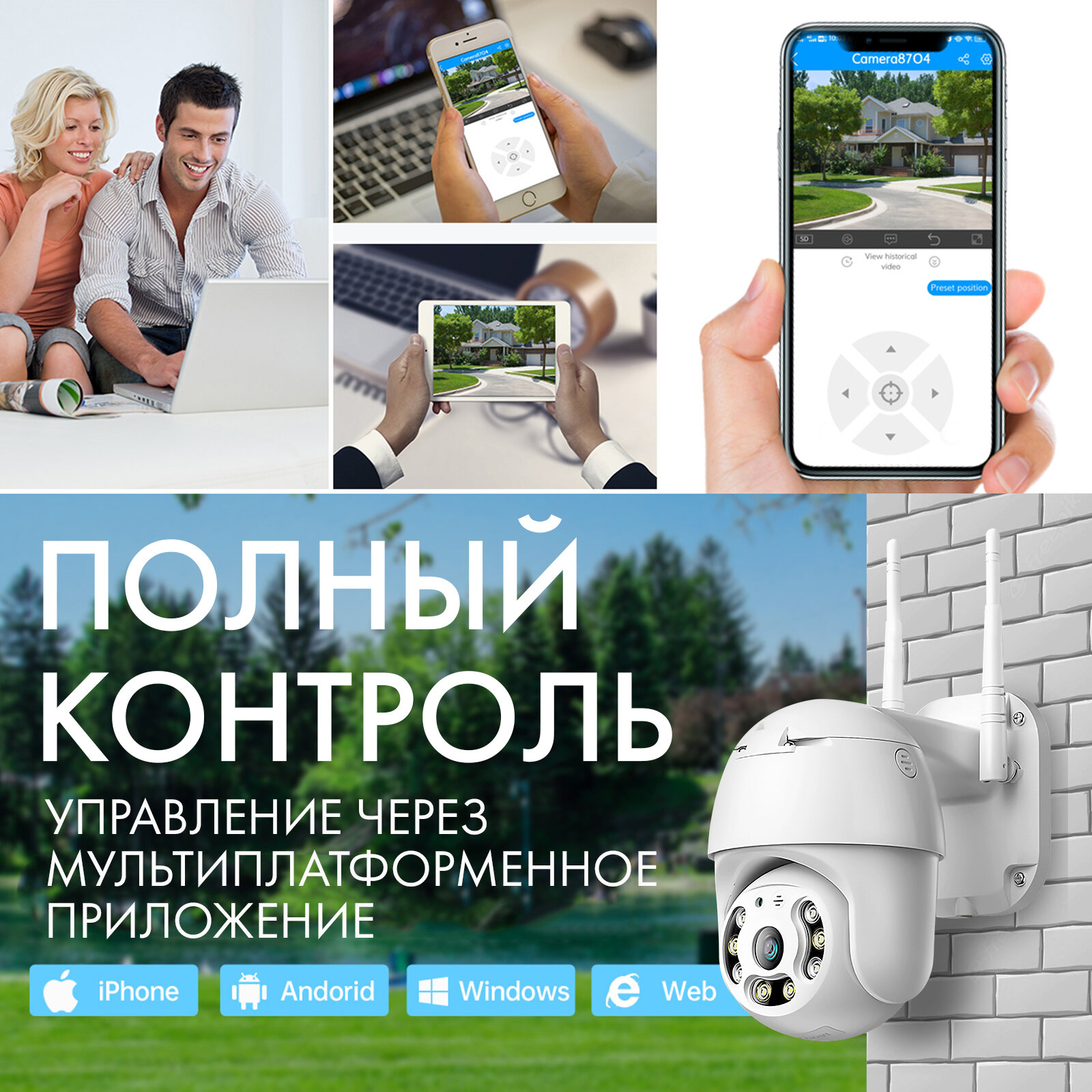 Беспроводная камера наблюдения Wi-fi / Уличная беспроводная камера видеонаблюдения / Поворотная Wi-fi камера наблюдения