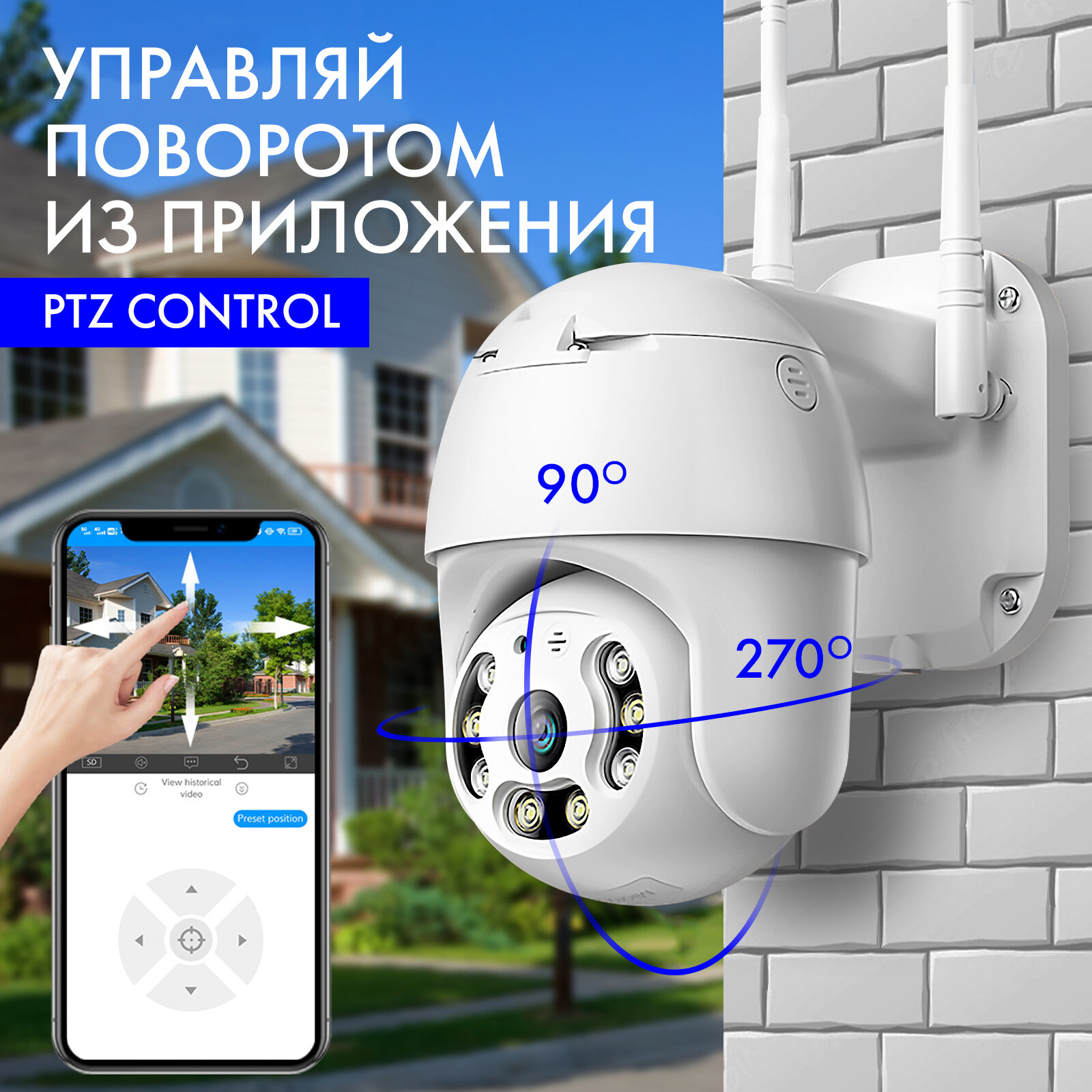 Беспроводная уличная Smart Wi-Fi , датчик движения, ночная съемка, поворотная, обратная связь, для улицы и помещений, IP камера Самая Лучшая и удобная приложение на русском