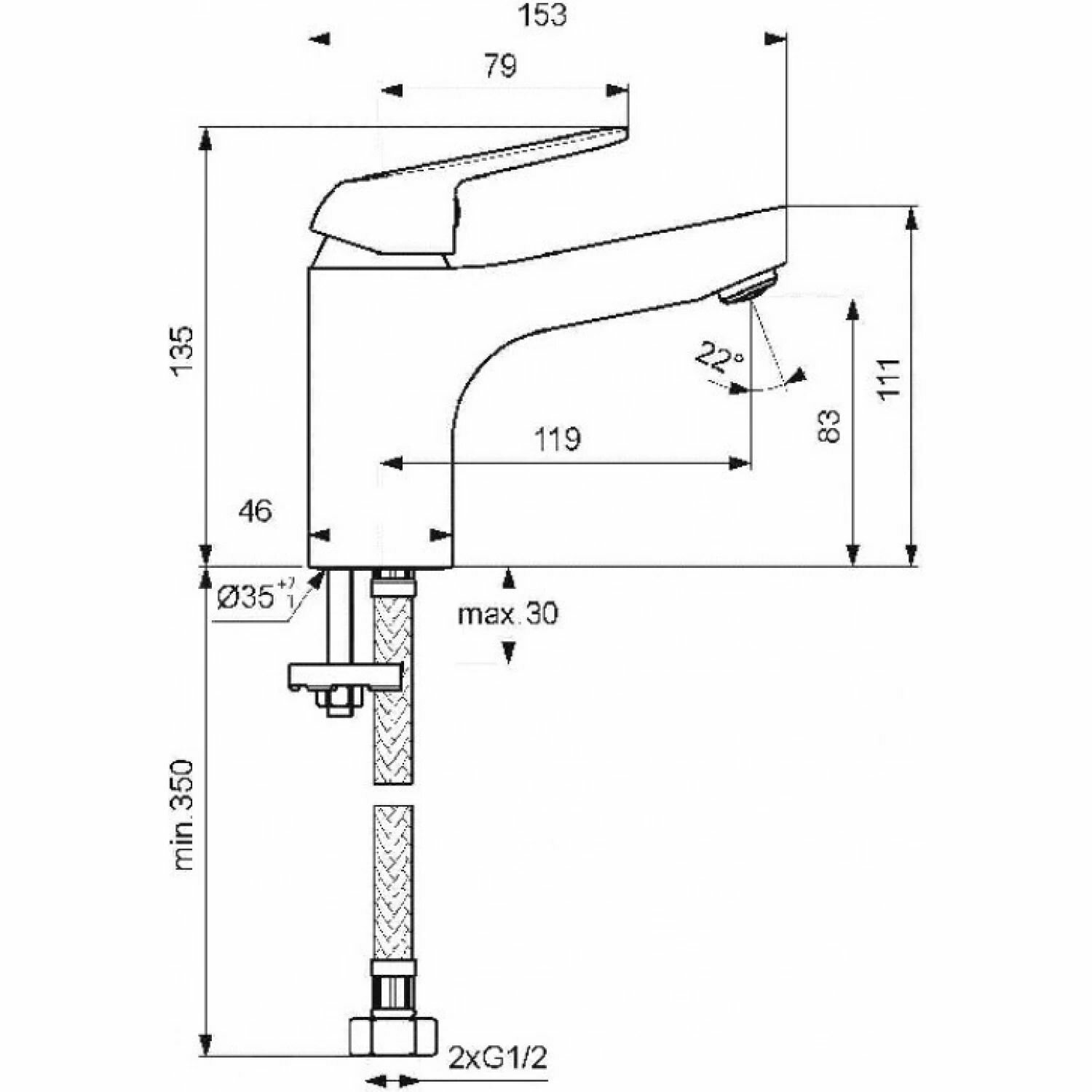 | Комплектация | смеситель, аэратор, керамический картридж 35 мм, гибкая подводка G1/2", 400 мм |