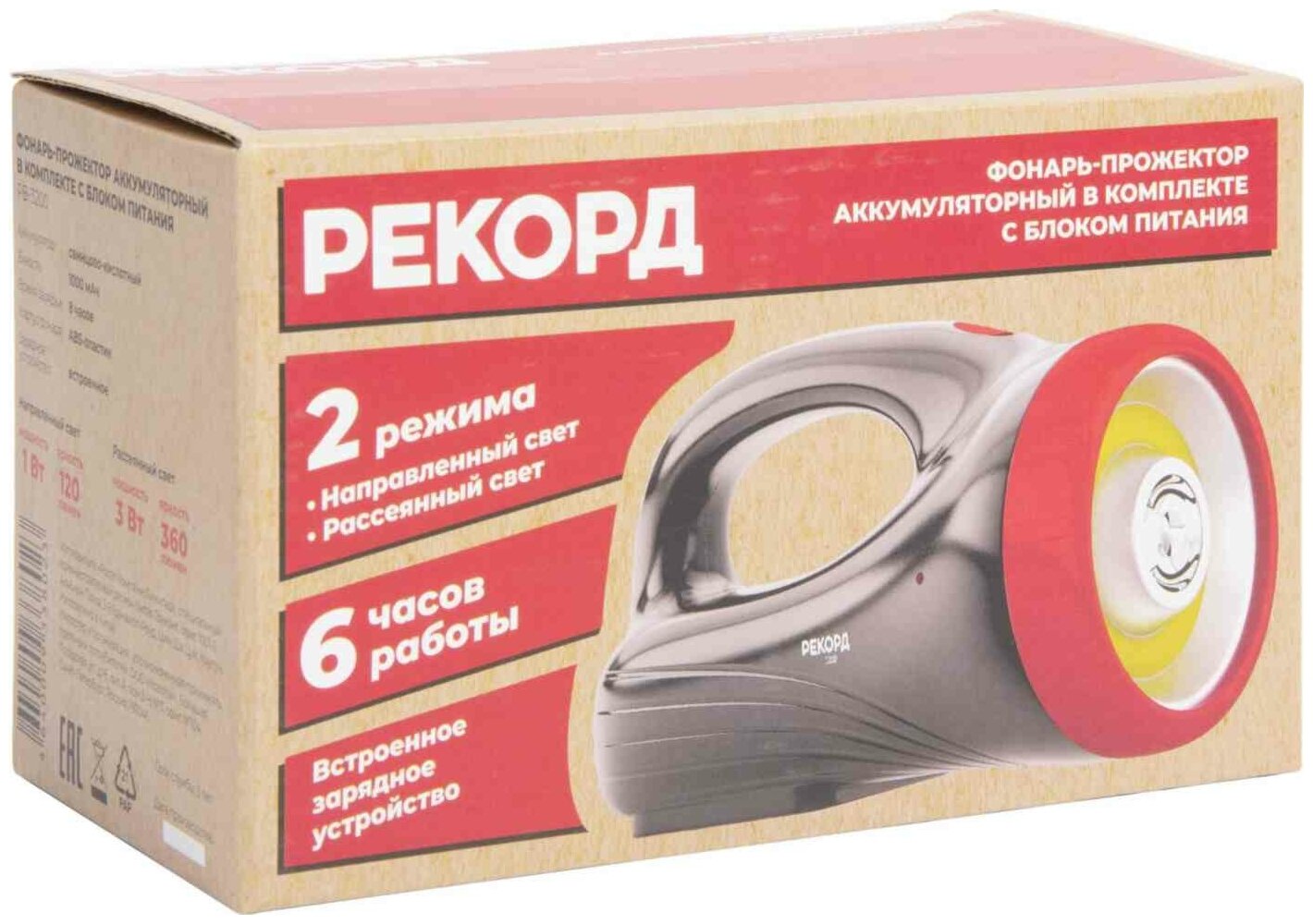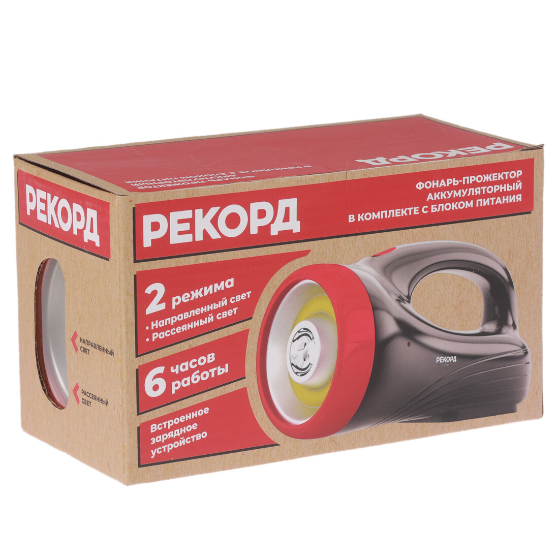 Фонарь прожектор Рекорд PВ-3200 светодиодный 2 LED 4 Вт аккумуляторный SLA 1000 мАч пластик 2 режима (23206)