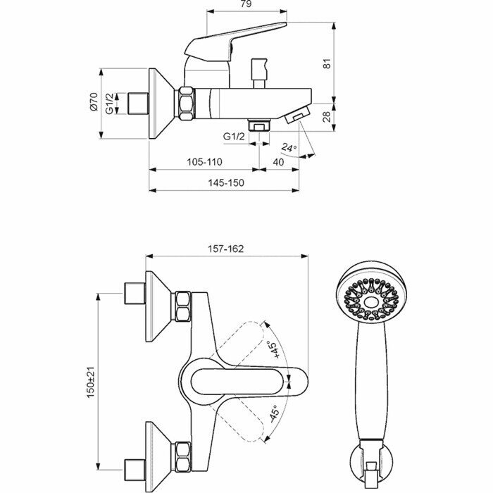 Настенный смеситель для ванны/душа VIDIMA Видима Файн BA388AA