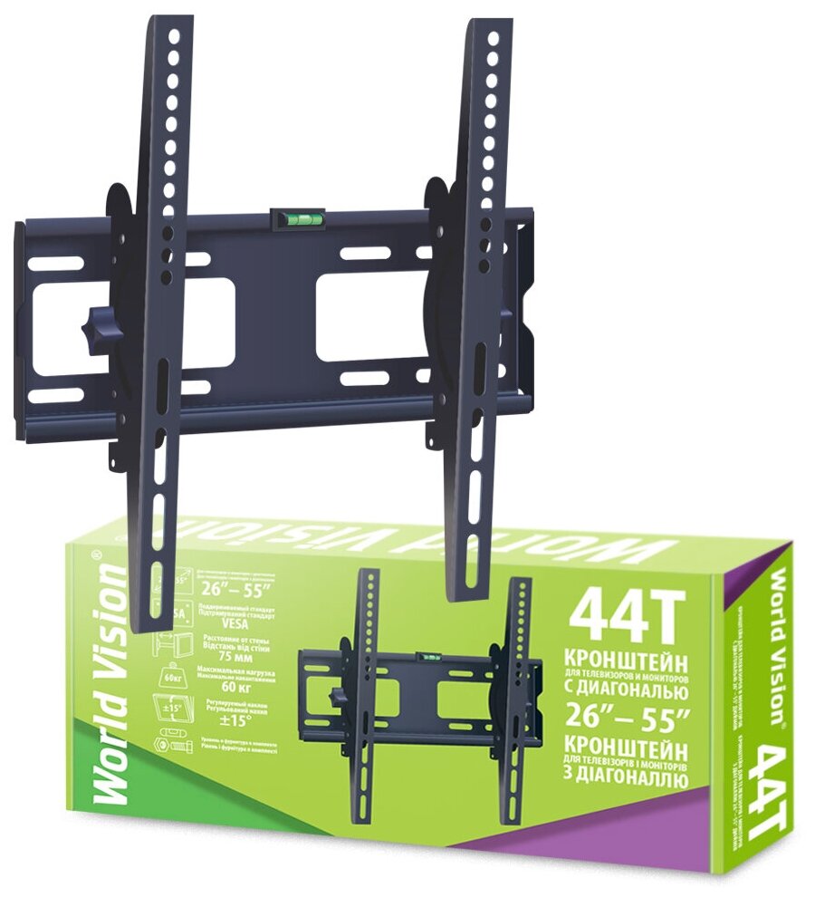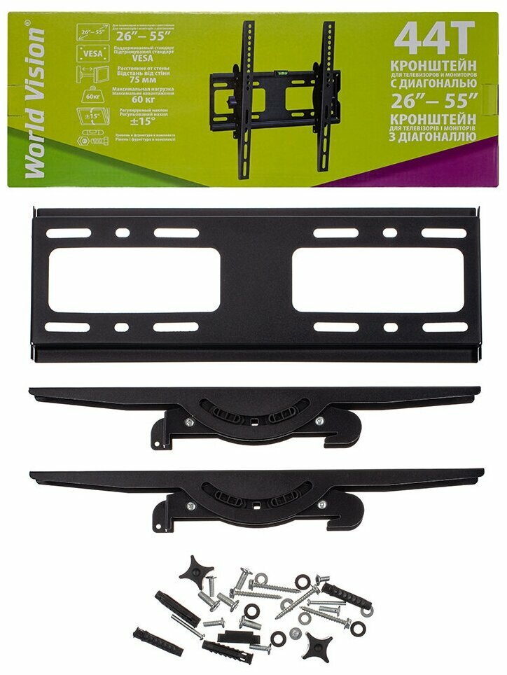 Кронштейн для телевизора на стену наклонный 26" - 55" дюймов металл черный настенный 400х400 World Vision 44Т