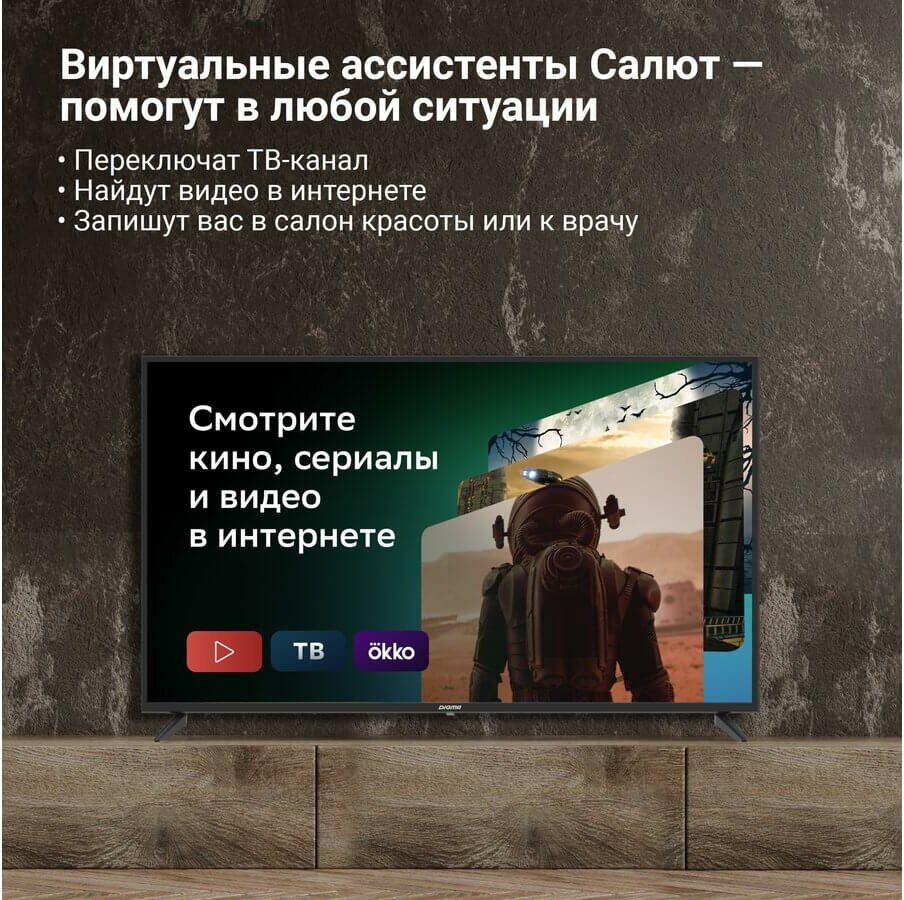 Хороший телевизор, понравилось качество изображения, все цвета максимально реалистичные, с Салют ТВ быстро смогли разобраться и все настроить, работает без зависаний