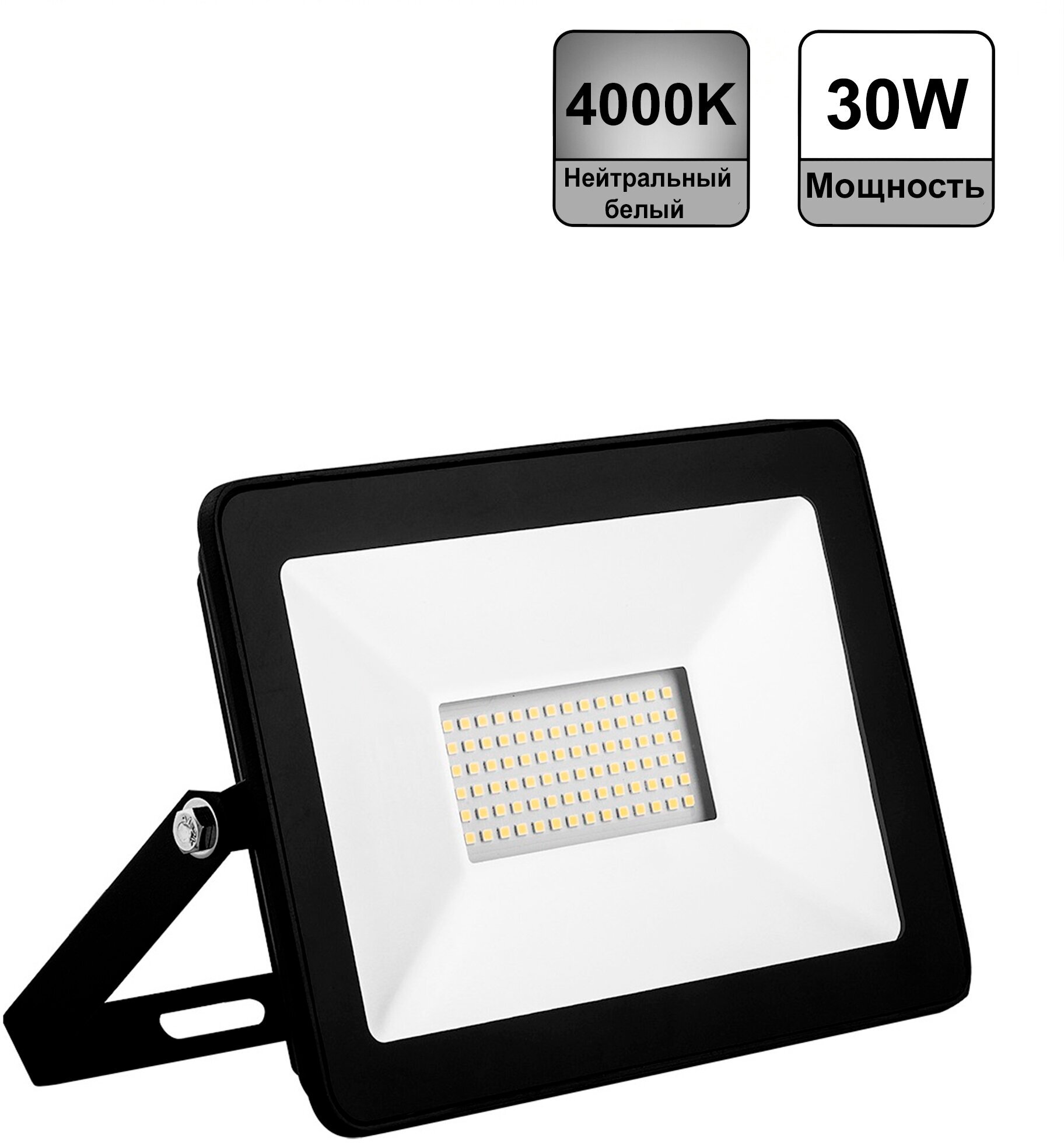 Прожектор светодиодный, 2835SMD, 30W 4000K AC220V/50Hz IP65, черный, 55076