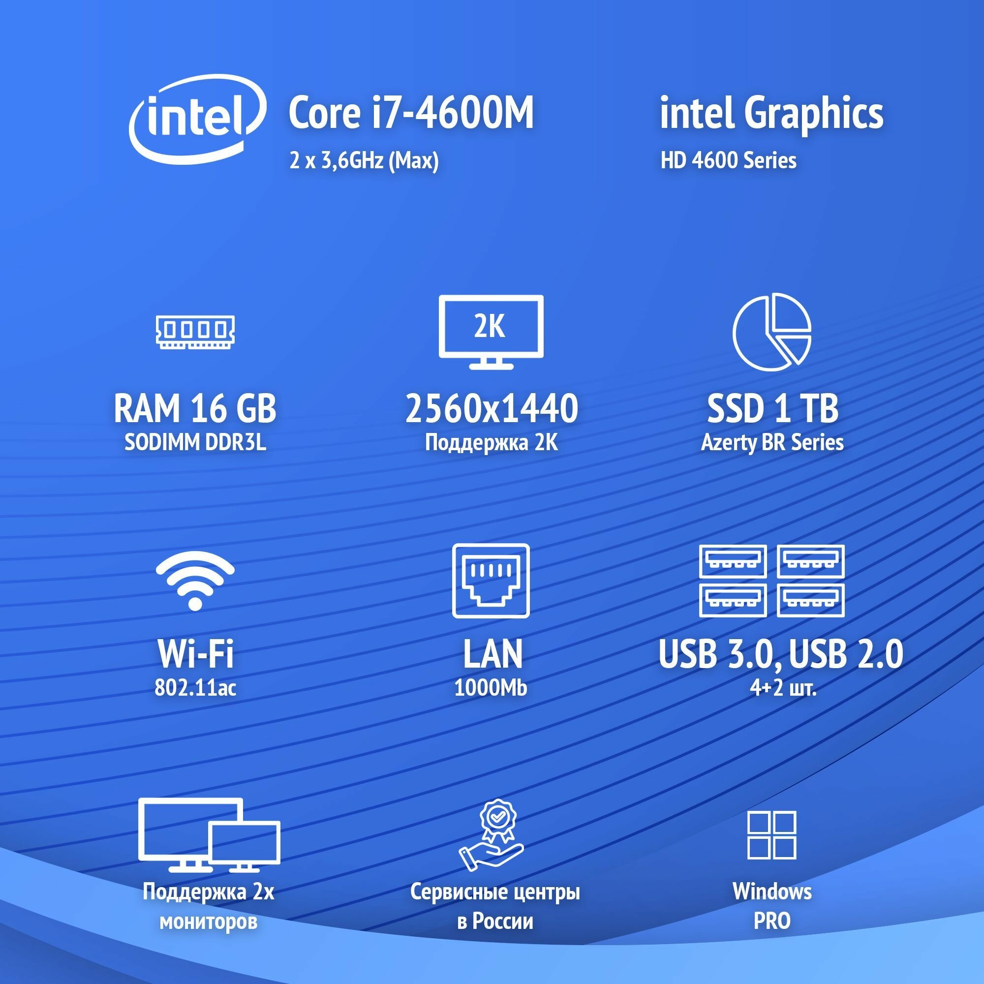 Моноблок Azerty AZ-2702 (27" IPS 2560x1440, Intel i7-4600M 2x2.9GHz, 16Gb DDR3L, 1Tb SSD) интересное: