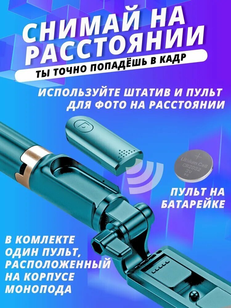 СохранитьМонопод для селфи Selfie Stick темно-зеленый, встроенный штатив триподом, с регулируемым держателем и c блютуз пультом Bluetooth Беспроводной монопод интересное: